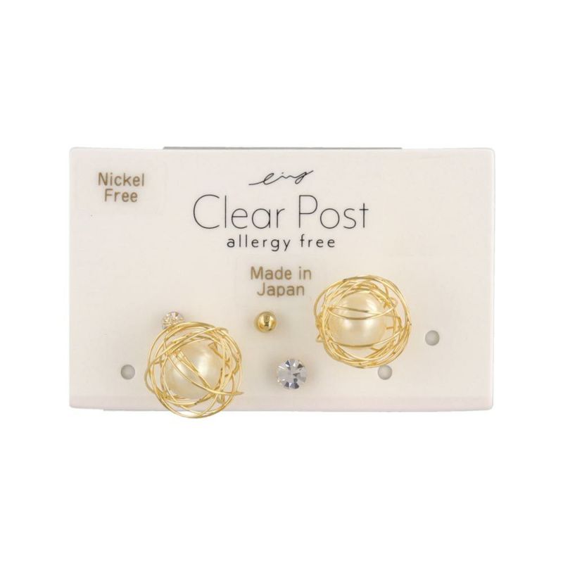 jp0642パールとメタルを合わせた上品なデザイン、気分で選べる5個セットのピアス。