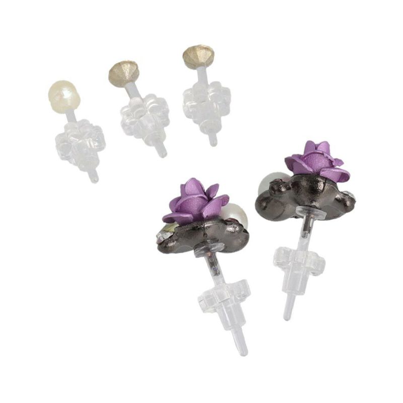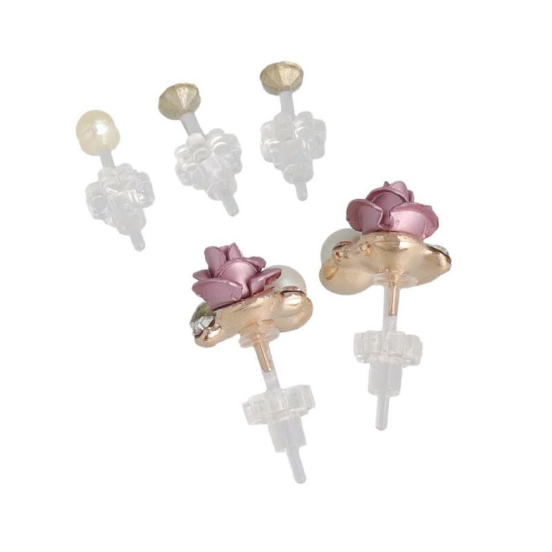 樹脂ピアス ニッケルフリー 薔薇 バラ パール カラー ストーン 5個セット スタッドピアス