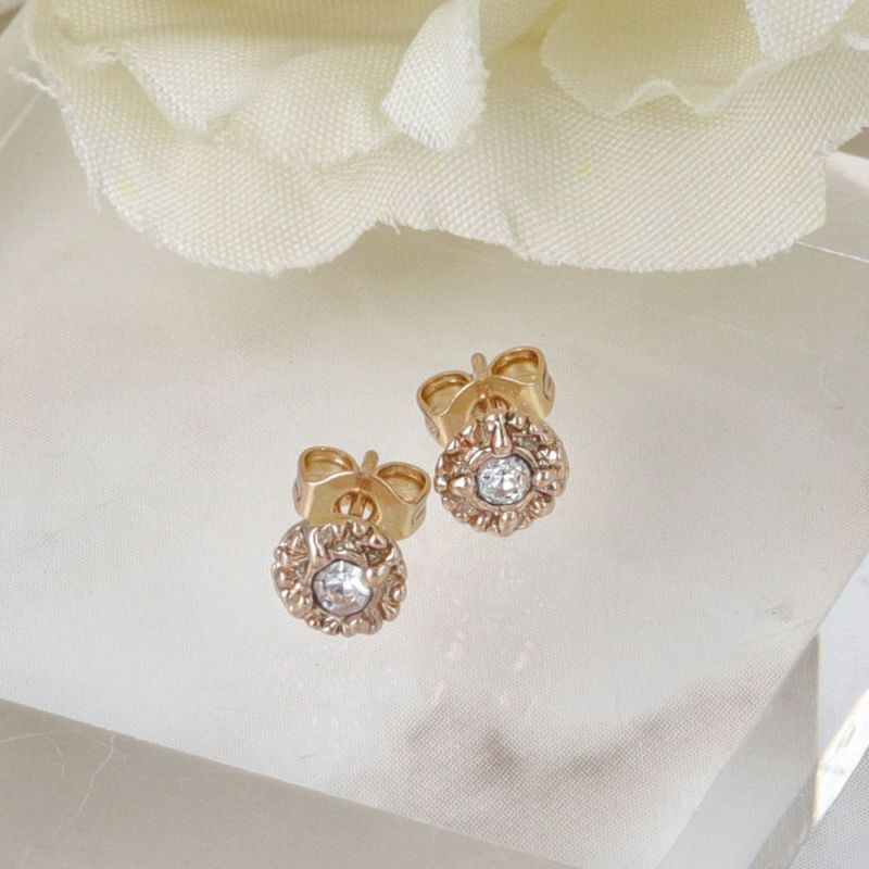 日本製、真鍮、ガラス、真鍮キャッチ、K18ピンクゴールドポスト