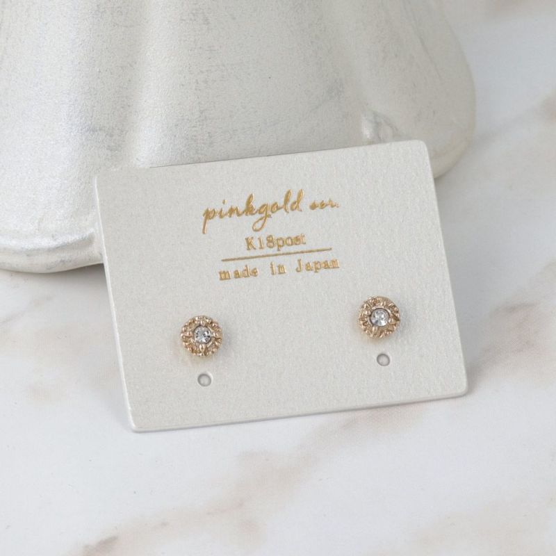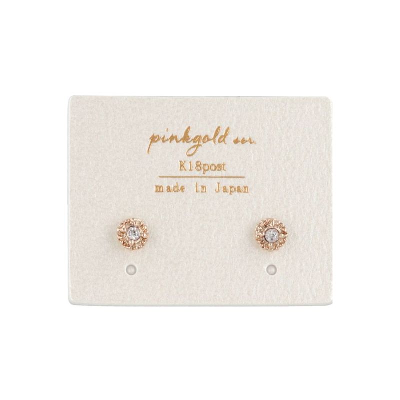 ピアス サークル ストーン K18ピンクゴールドポスト スタッドピアス
