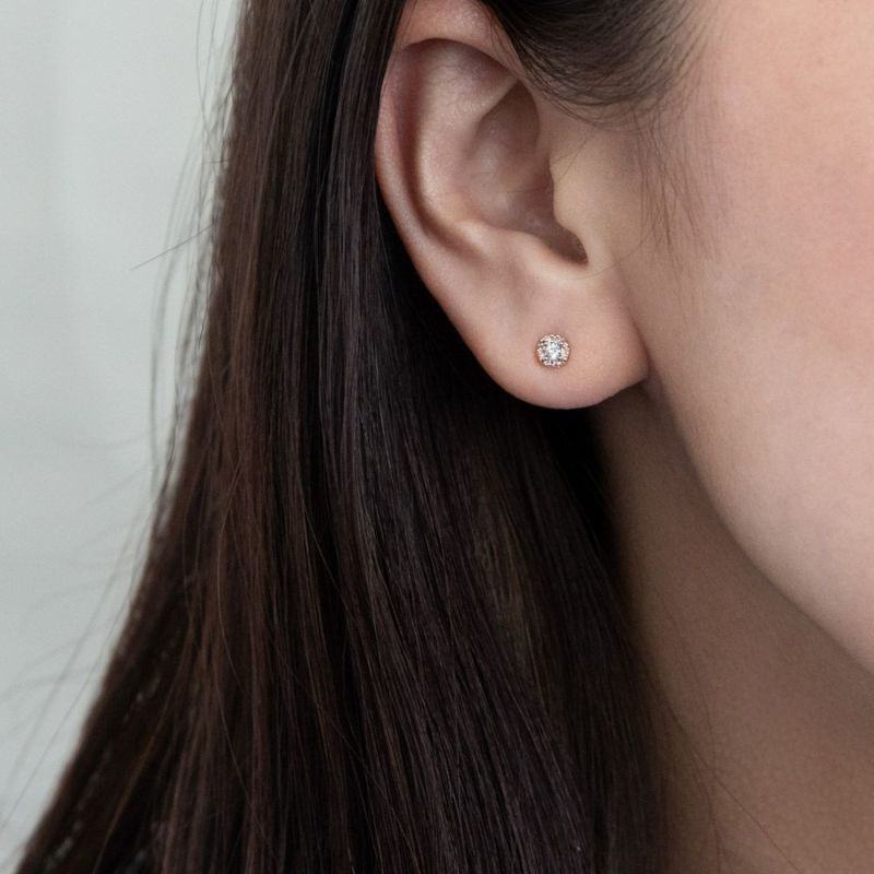 ポストに『K18 pinkgold』を使用し、モチーフとの一体感が生まれることでどの角度から見ても自然でうつくしい仕様です。