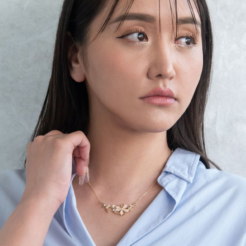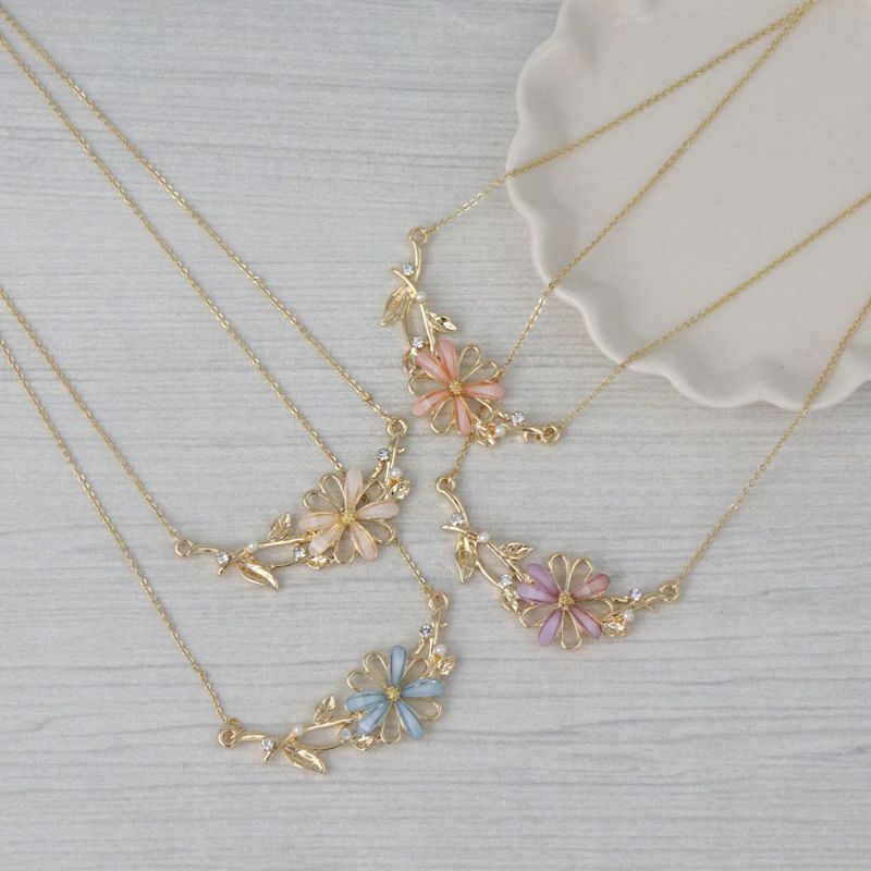nk0989ガーリーコーデにぴったりなマーガレットモチーフのネックレス。首元を明るく華やかに彩ってくれます。