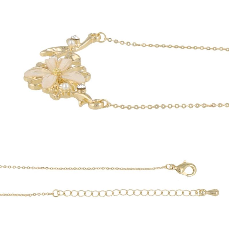 ネックレス ニッケルフリー メタル マーガレット フラワー ストーン パール ロングネックレス