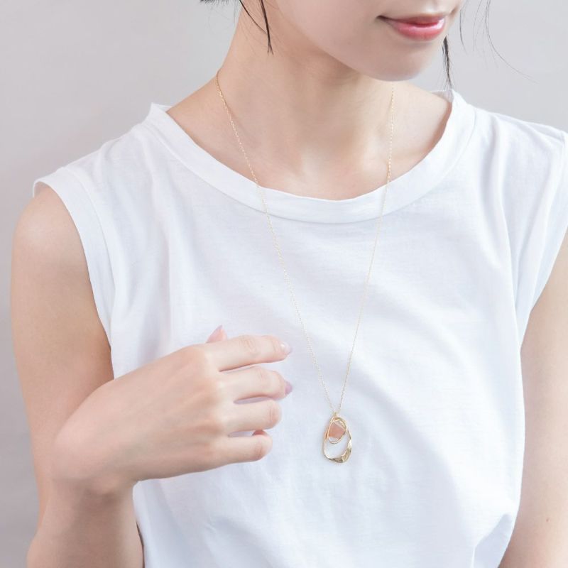 nk0993天然石カラー×メタルの組み合わせがお洒落なチェーンネックレス。