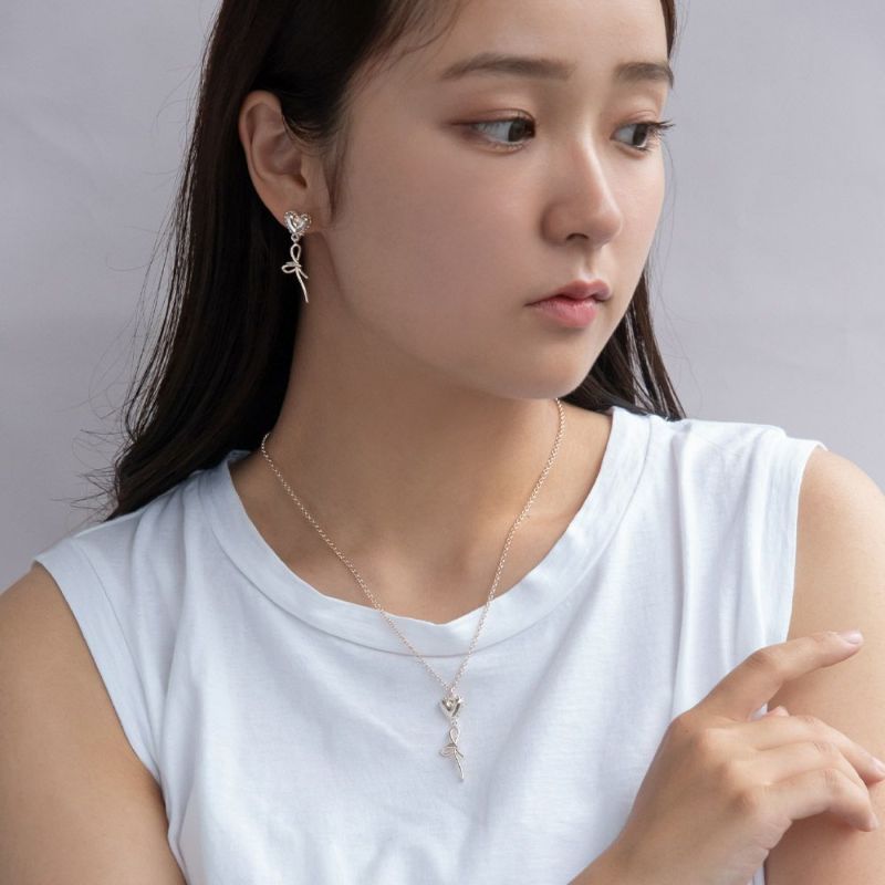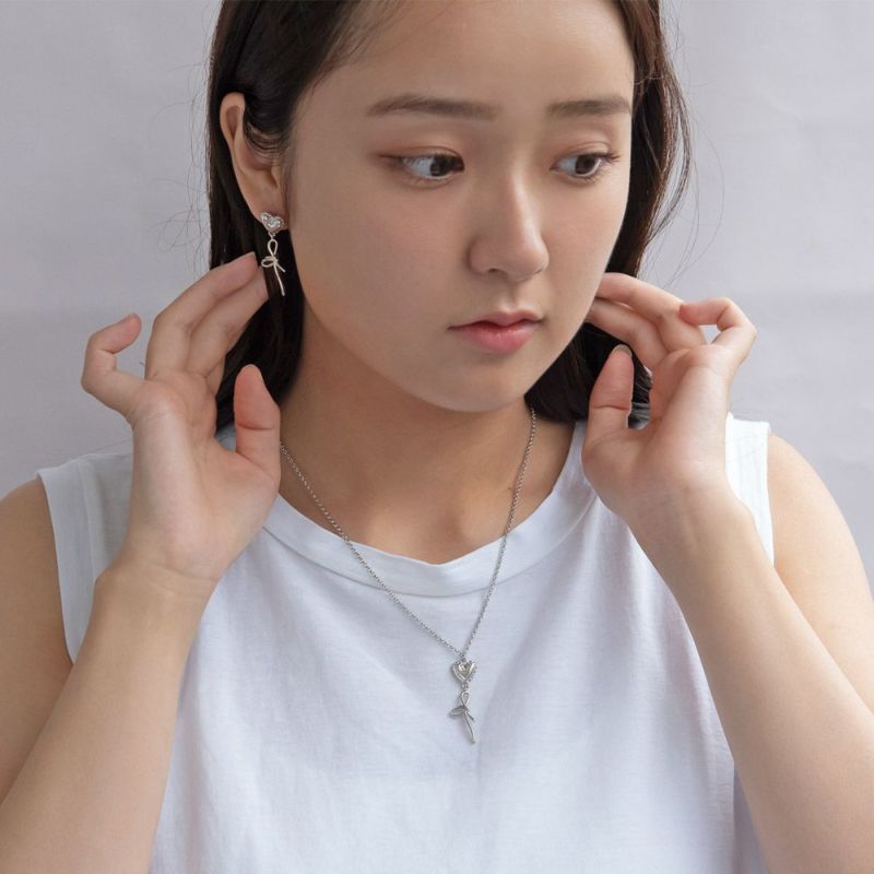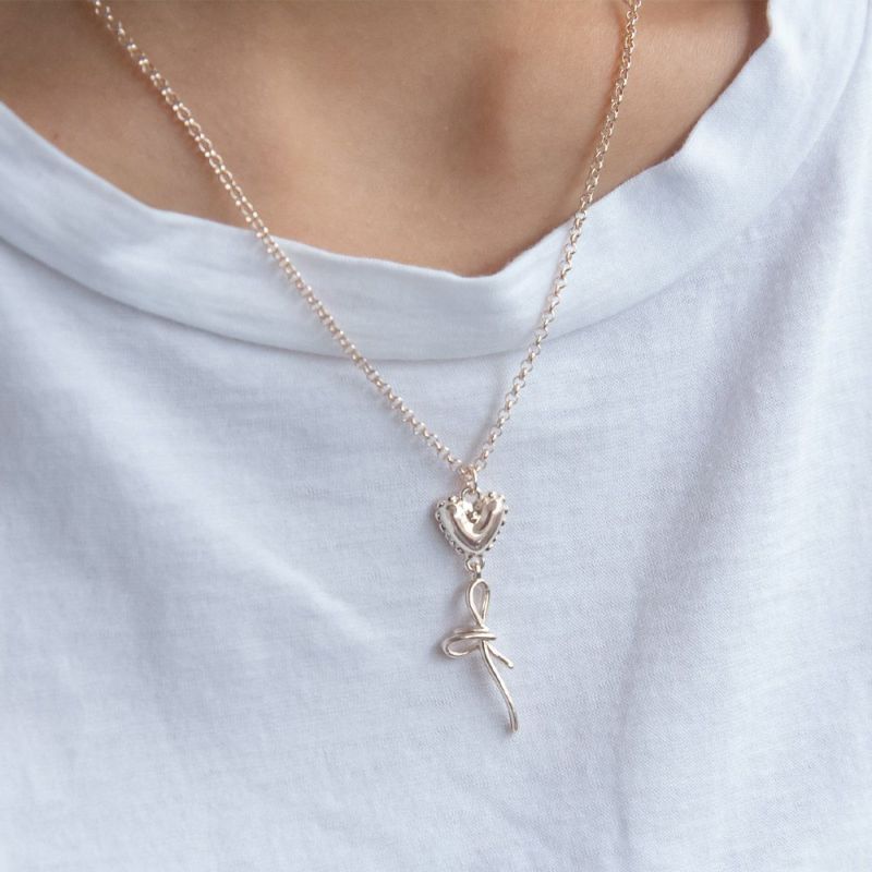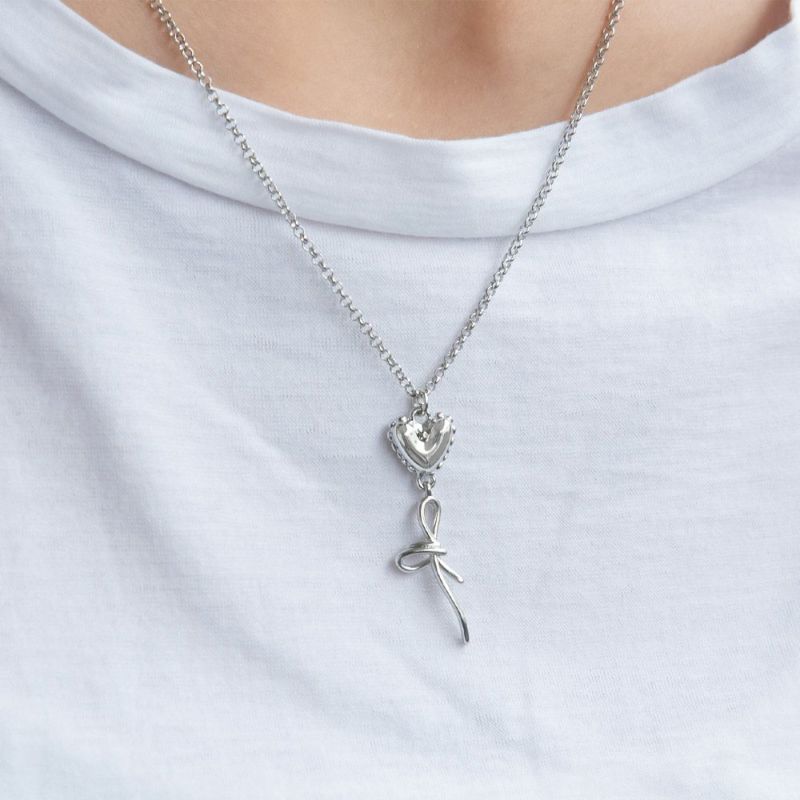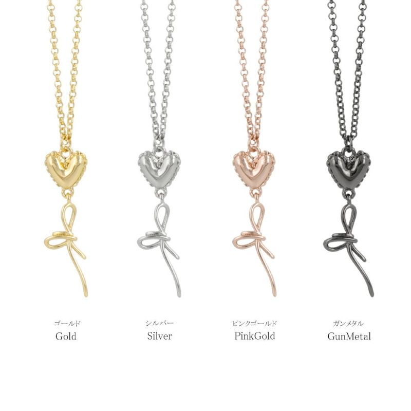 ネックレス ニッケルフリー ハート リボン メタル ペンダントネックレス