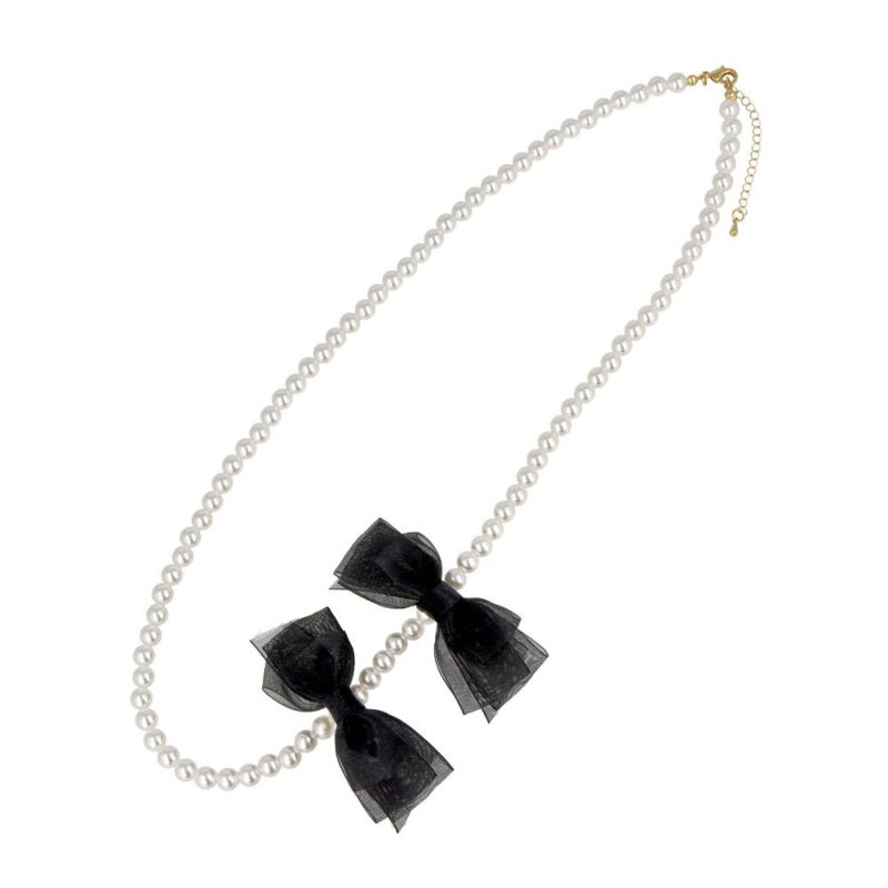 ネックレス ニッケルフリー パール ブラック シアー リボン ダブル 2way ブローチネックレス ロングネックレス