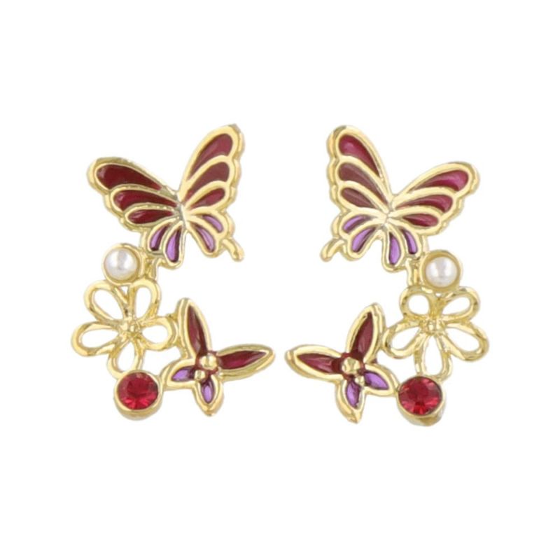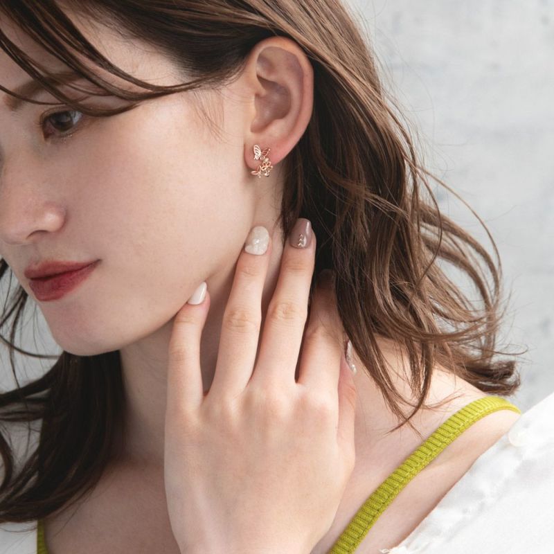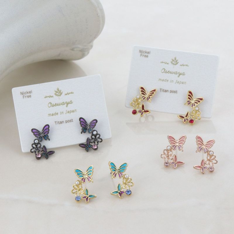 ピアス ニッケルフリー 蝶 バタフライ 花 フラワー ストーン パール カーブ チタンポスト スタッドピアス