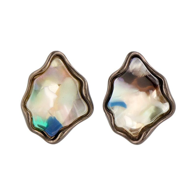 pc1652水面のようなリラックス感のあるシルエット、そこにマーブル模様が効いたアートな雰囲気。大人コーデに使いやすい、ちょうど良いお洒落さのあるピアス。