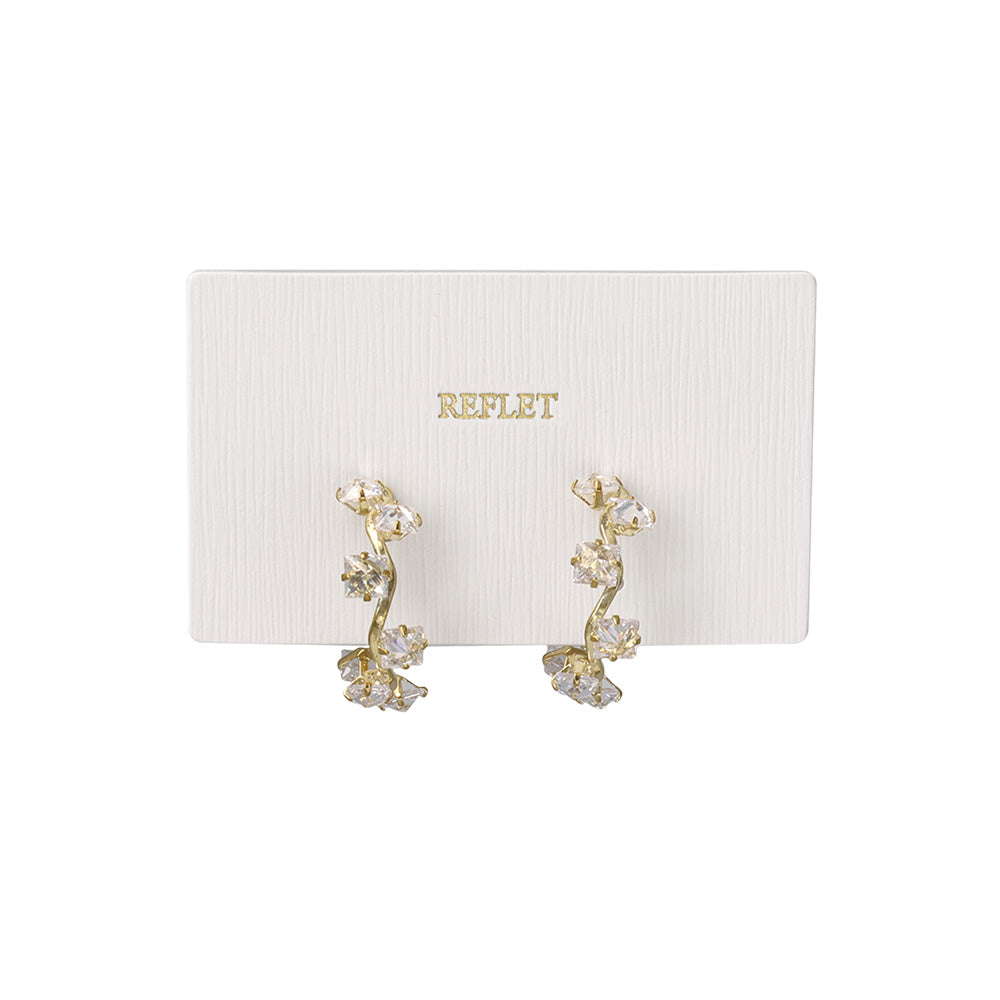 立体感からうまれるキュービックジルコニアの輝き、ディティールが目を惹くフープピアス。