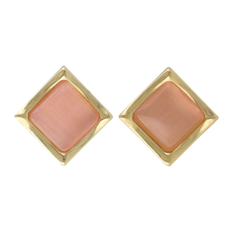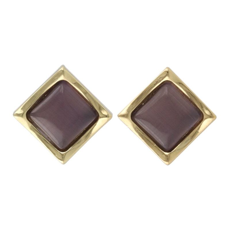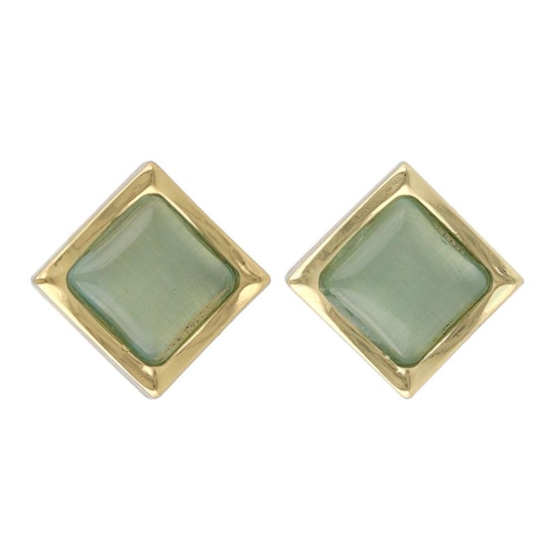 pc1694メタルフレームのキャッツアイ風ストーンが上品なスクエアピアスは、デイリー使いにちょうどよいサイズ感。フェイスラインを華やかに彩ってくれます。