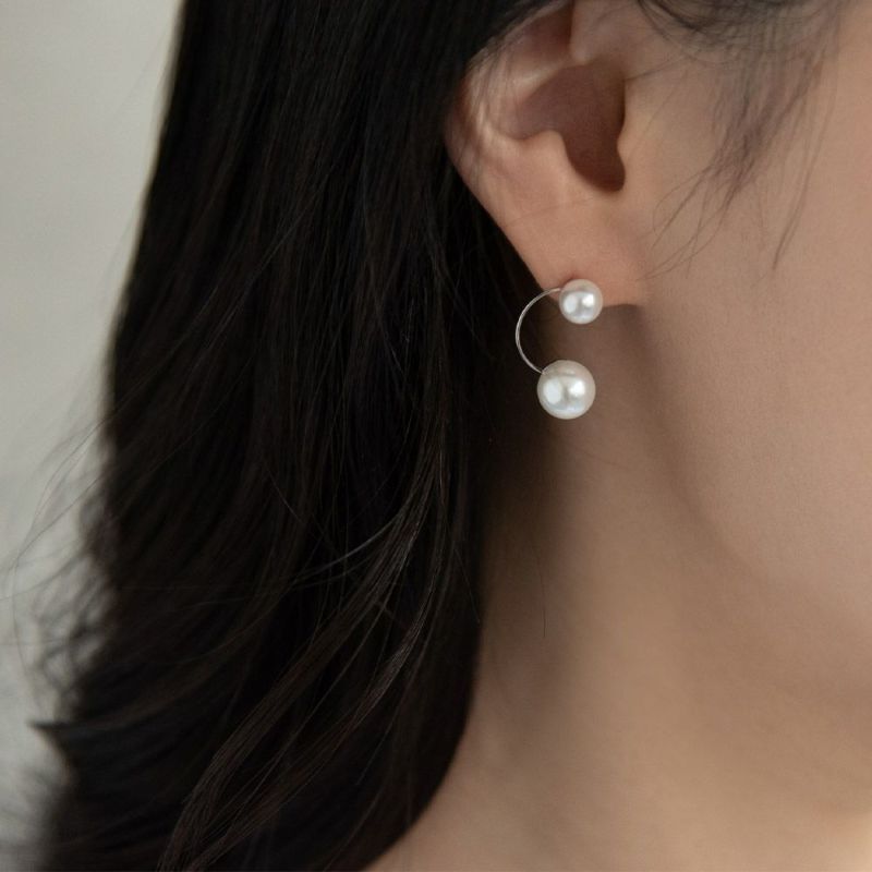 pc1734お洒落の質感がぐっと高まる、シルエットの綺麗なパールピアス。