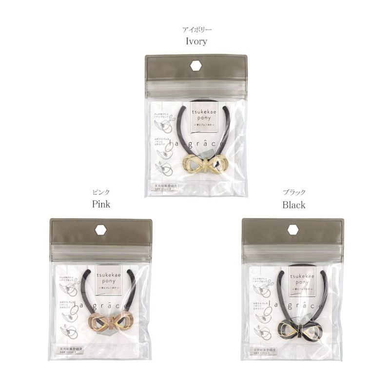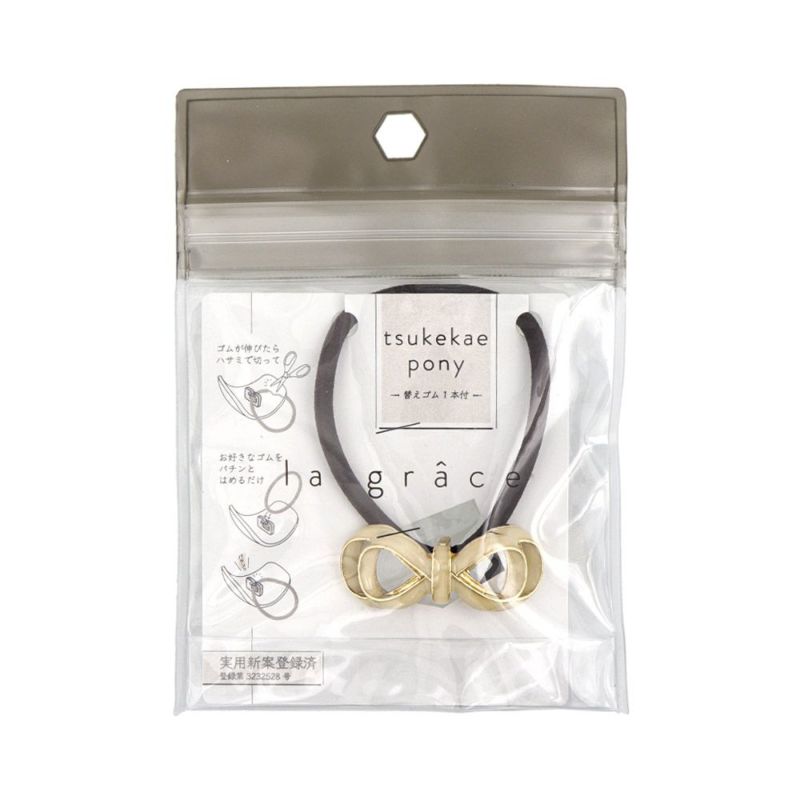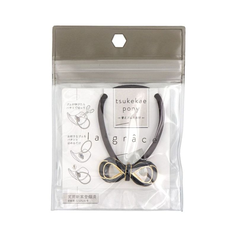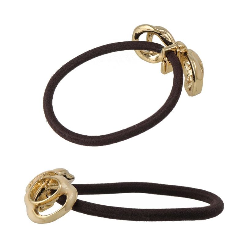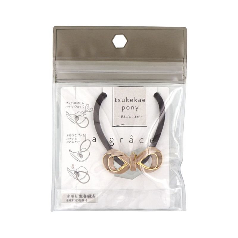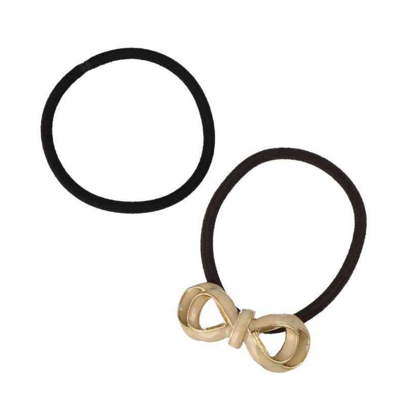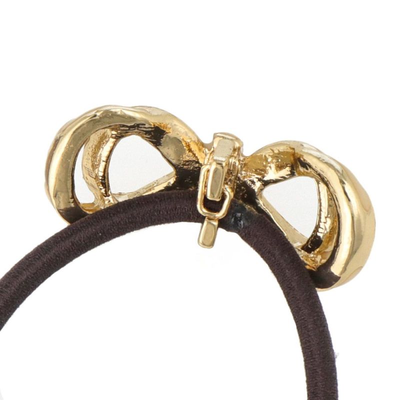 ヘアゴム tsukekae pony メタル エポ カラー リボン ヘアゴム2本付き(ブラウン/ブラック)