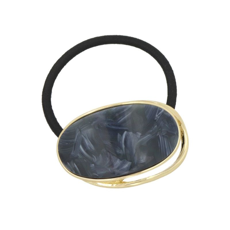 ヘアゴム オーバル マーブル アセチ メタル フレーム ヘアポニー