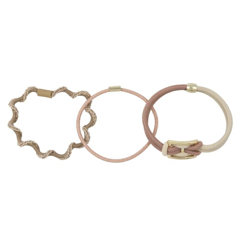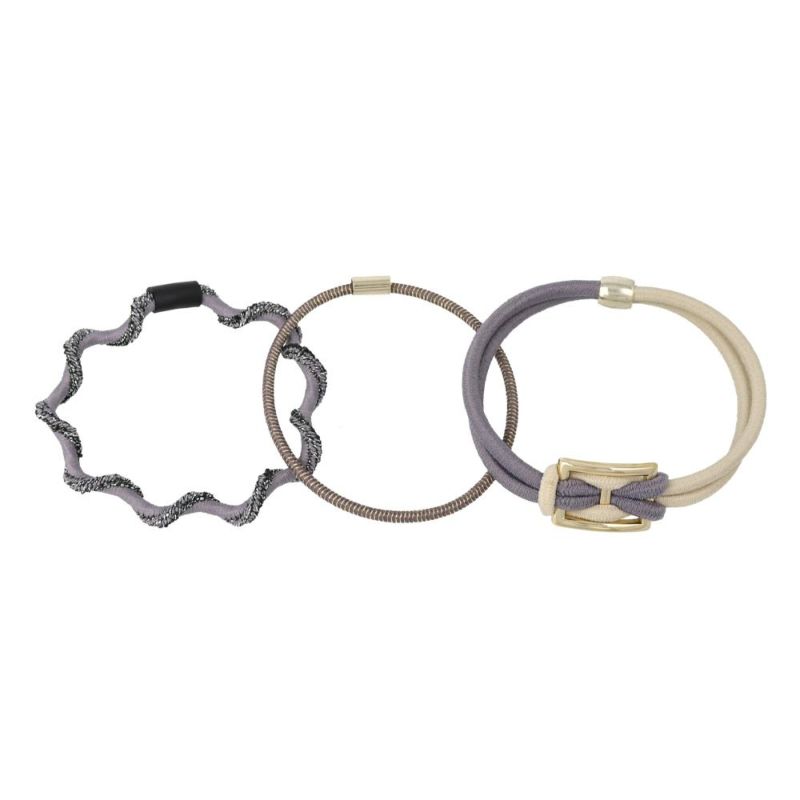 コーディネートに合わせて好きな色や形をセレクト。いくつかの結び目をつくることで、アレンジが楽しめるヘアゴムのセット。