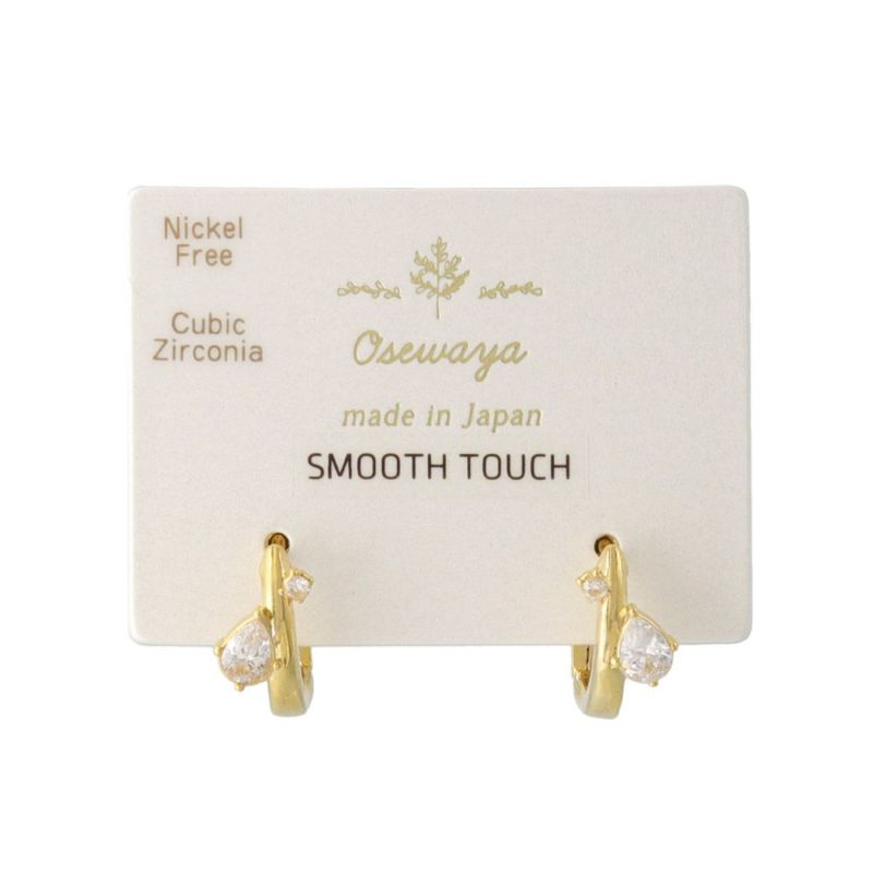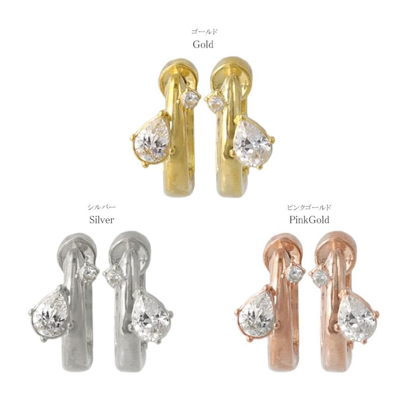 ピアス ニッケルフリー キュービックジルコニア ドロップ メタル ワンタッチ スムースタッチ フープピアス