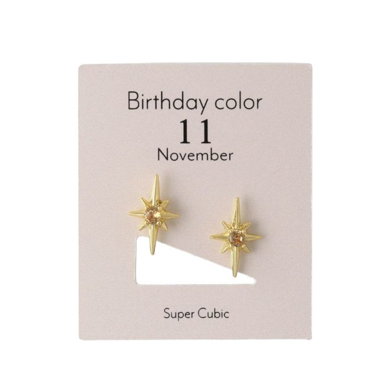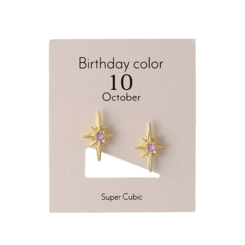 ピアス ニッケルフリー スター バースデーストーンカラー スーパーキュービックジルコニア チタンポスト スタッドピアス