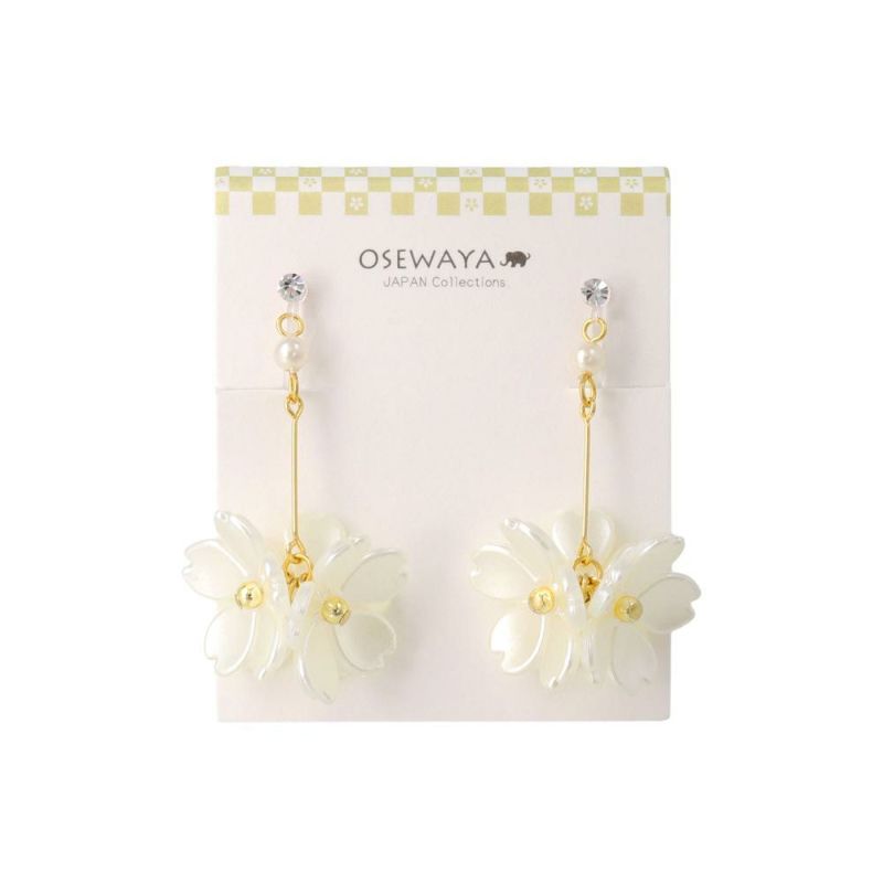 ノンホールピアス 桜 ストーン パール ワイヤー イヤリング 樹脂タイプ