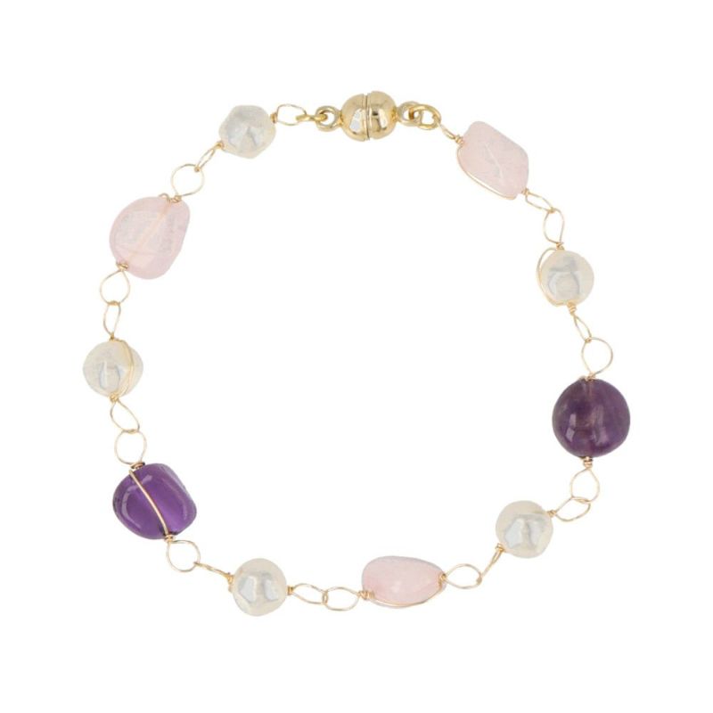 ax0374さまざまな天然石をあしらった、マグネットタイプで着脱しやすいブレスレット。