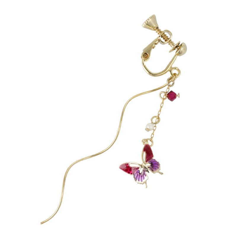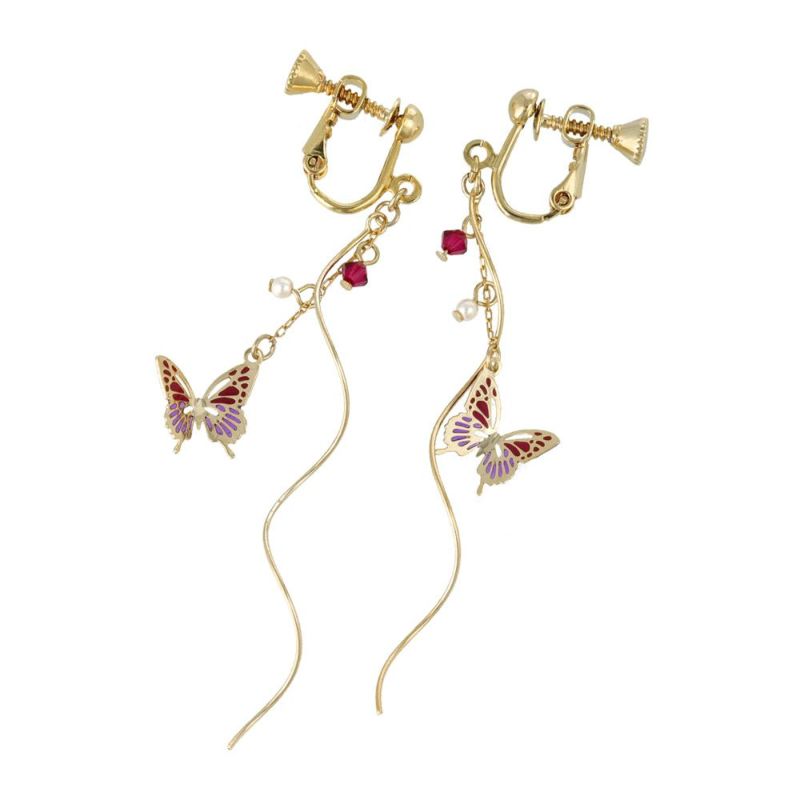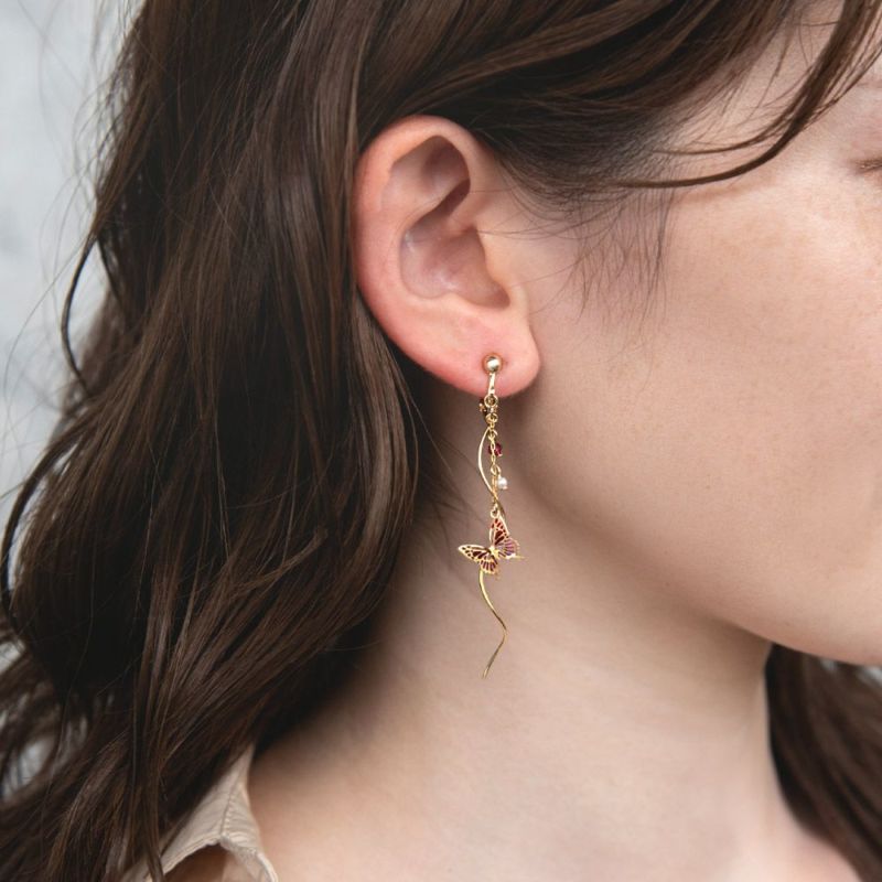 イヤリング ニッケルフリー 蝶 バタフライ パール ストーン ウェーブ メタル ネジバネ式イヤリング