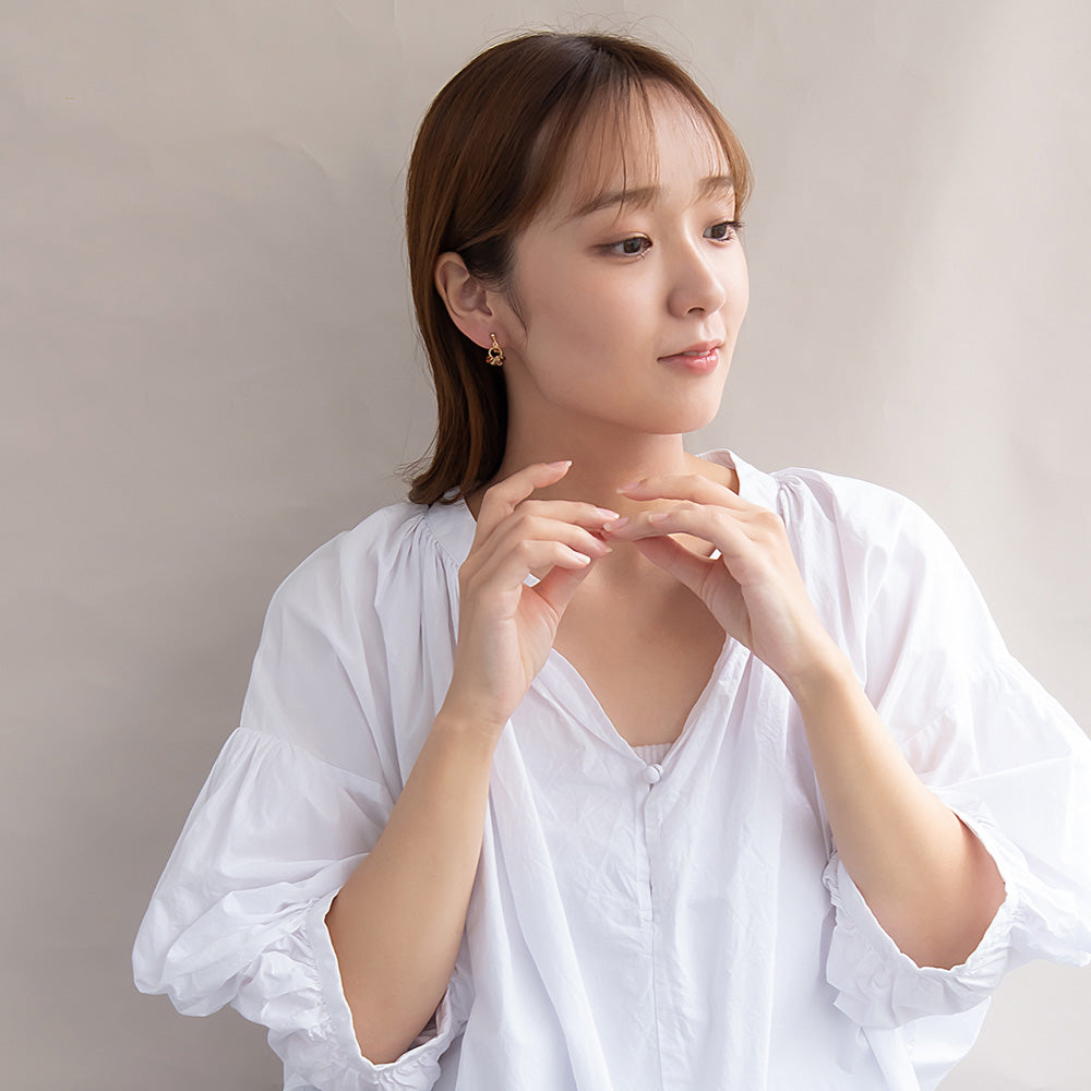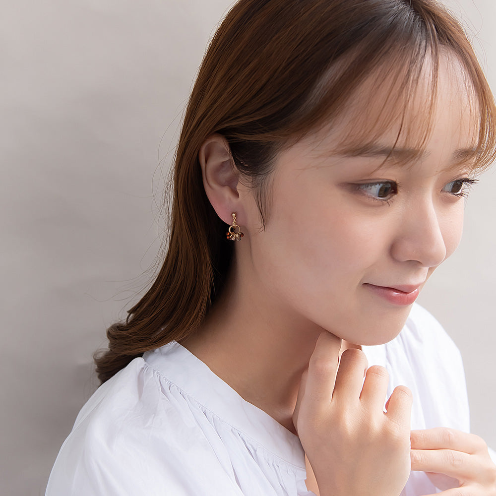 ax0543色のワンポイントがコーデの質を上げる、オンオフともに使えるきれいめイヤリング。派手すぎない気品あるカラーリングのガラスビーズで重たくならずに差し色が楽しめるアイテム。使いやすさのある小さめのサイズ感も魅力的。