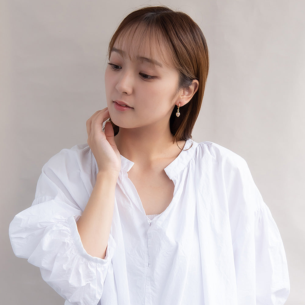 ax0544さりげなく、ちいさなハートがゆれるイヤリング。耳元に彩りを、心ときめくハートモチーフでコーディネートに甘さをプラス。使いやすさのある小さめのサイズ感も魅力的。