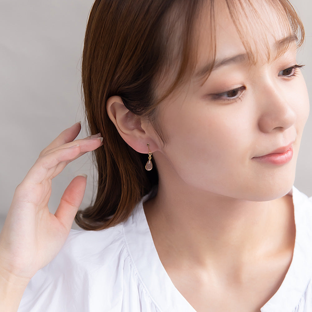 ax0545さりげなく、ちいさなドロップがゆれるイヤリング。耳元に彩りを、煌めくキレイ色のアイテムをコーディネートにプラス。使いやすさのある小さめのサイズ感も魅力的。