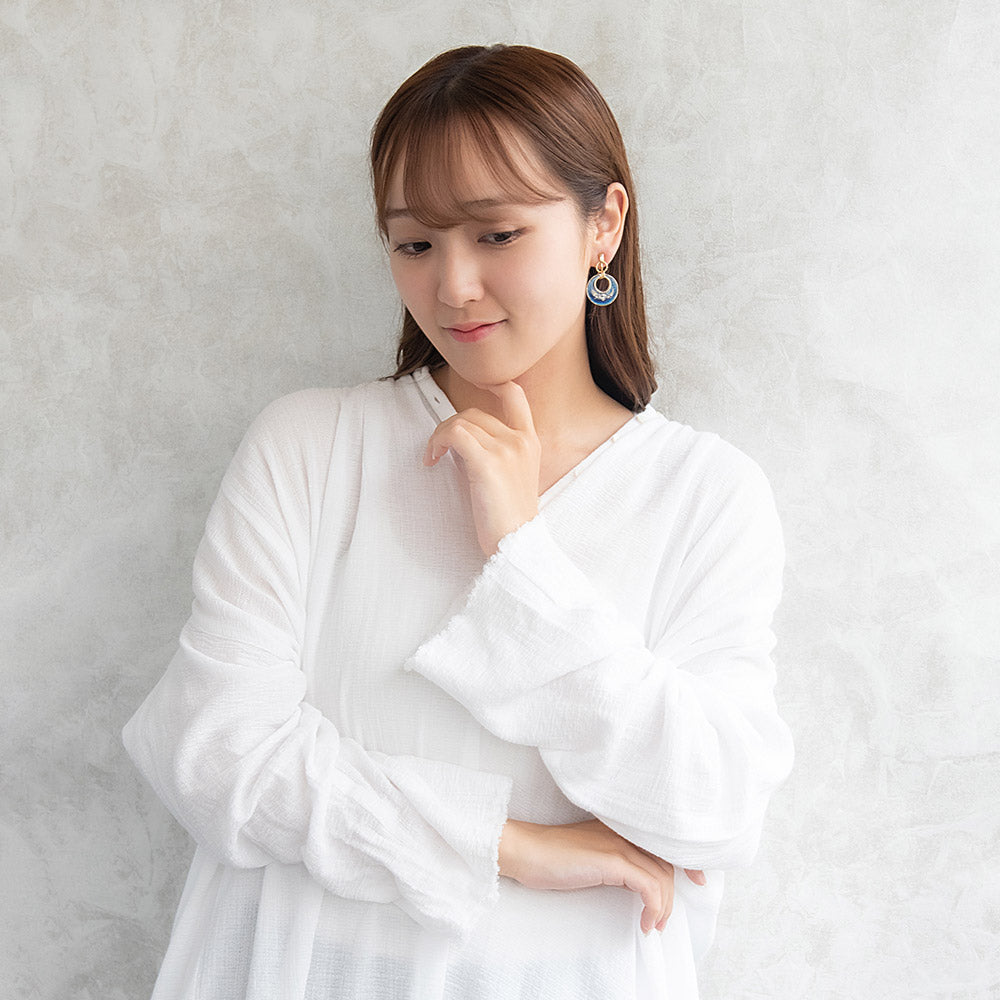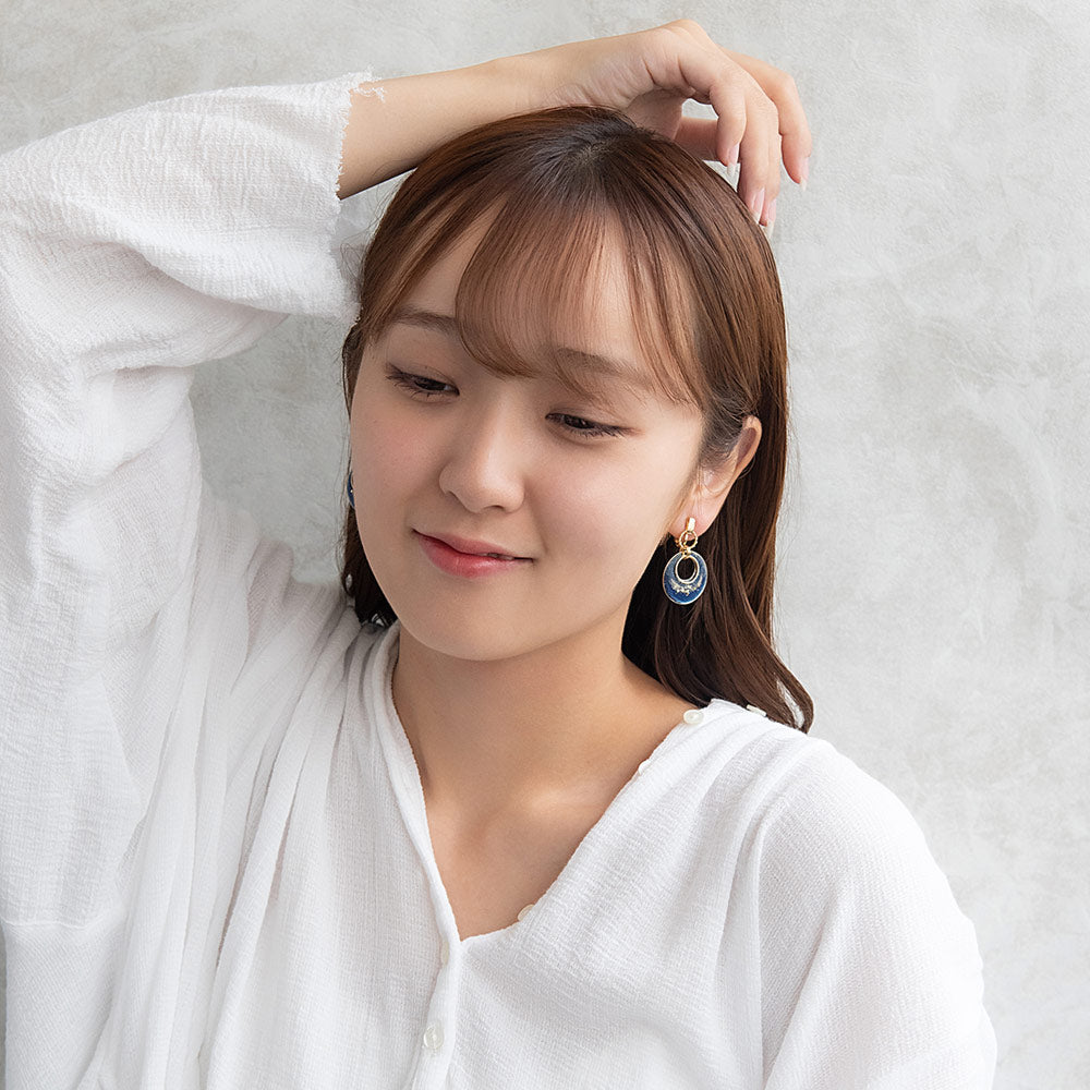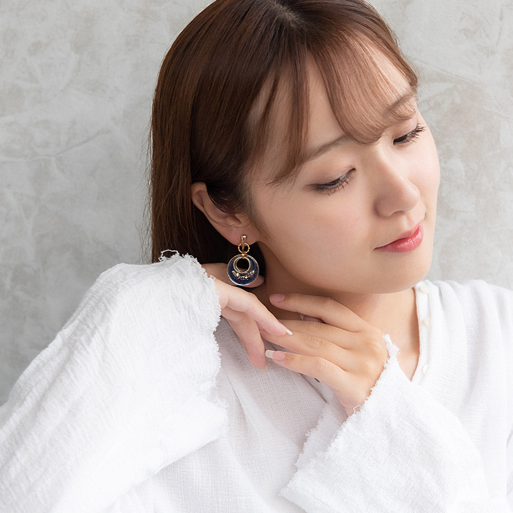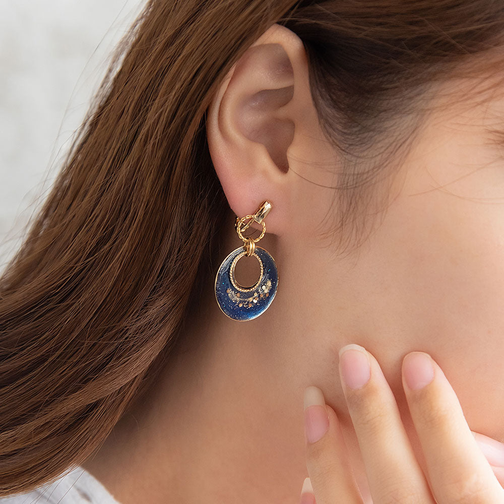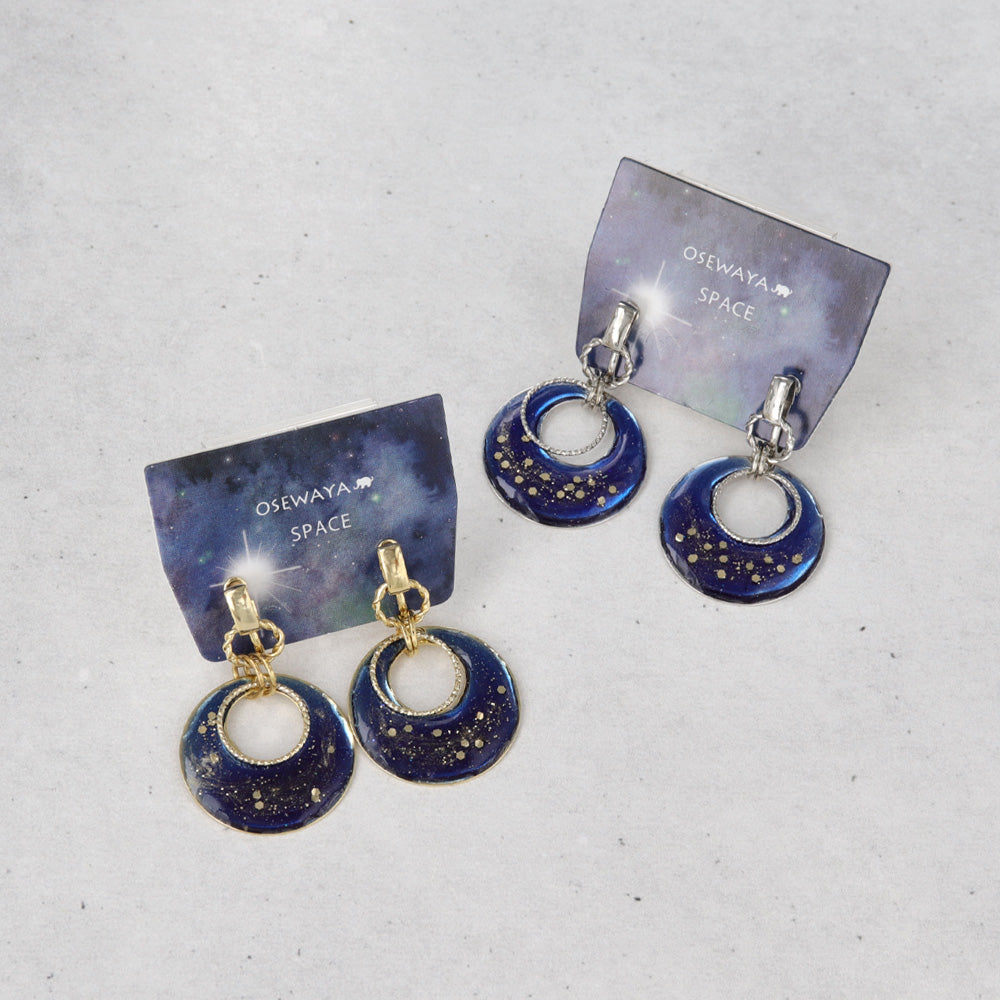 ax1402夜空に輝く、美しくロマンティックなギャラクシーデザイン。キラキラと輝く星たちの瞬き、神秘的に広がる宇宙を感じられるデザイン。人気のゆれるデザインで、耳元を華やかに演出します。さりげないゆれ感もかわいく、存在感もあってコーデ映え。