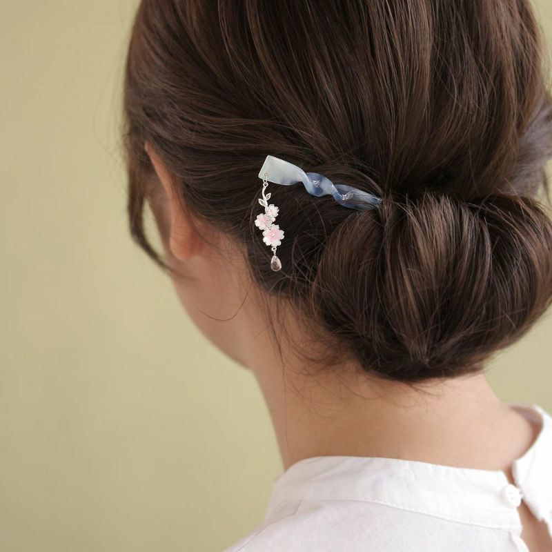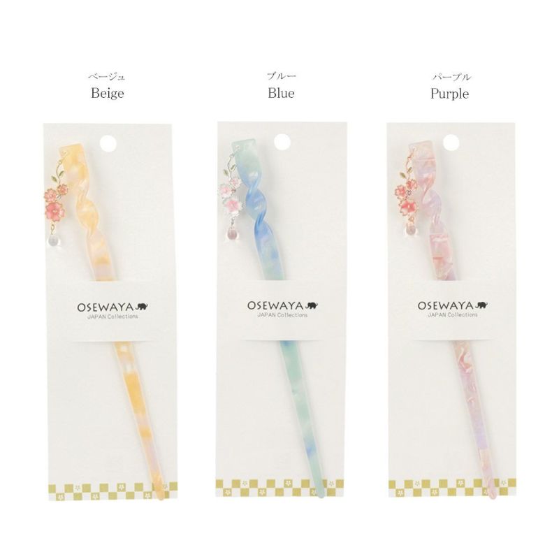 かんざし ニッケルフリー 桜 ドロップ マーブル ツイスト 簪