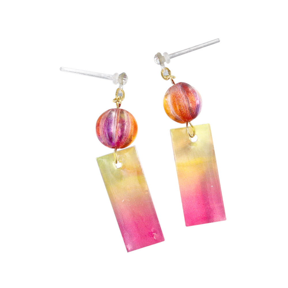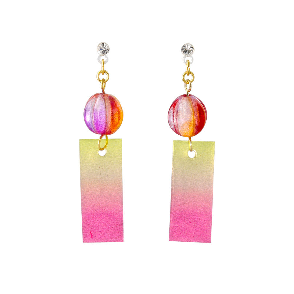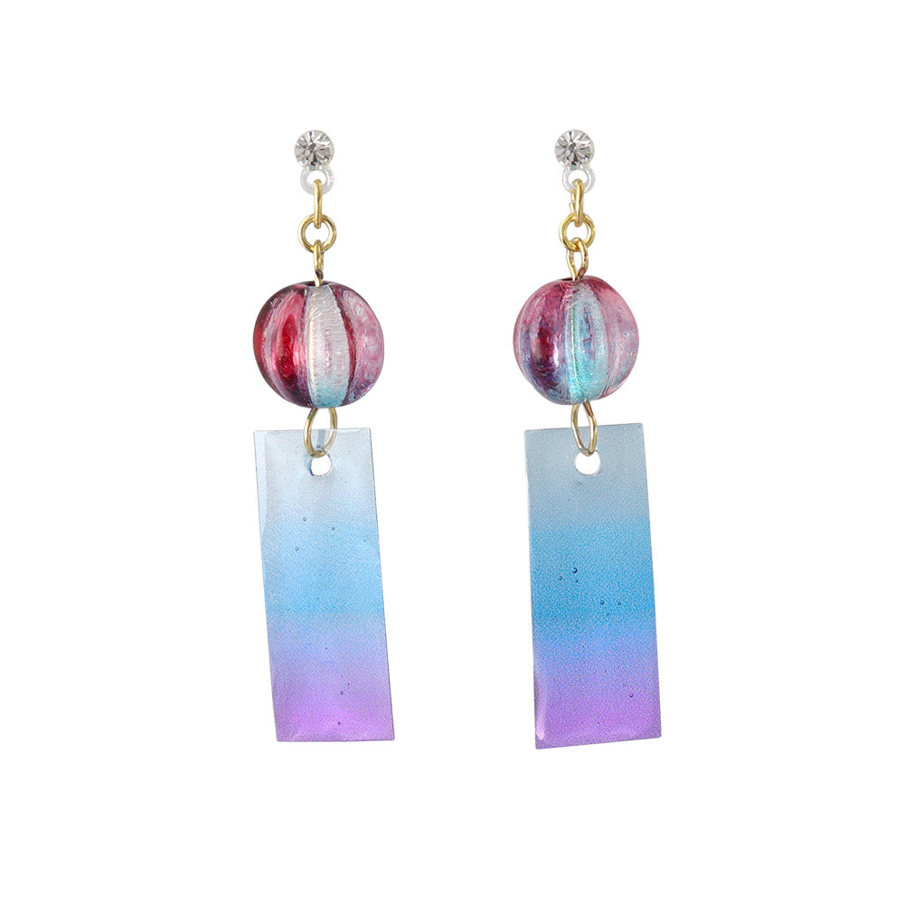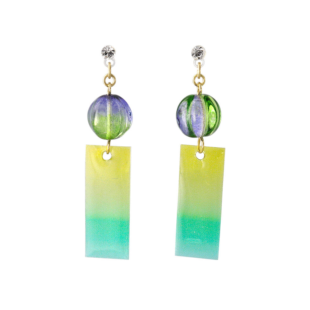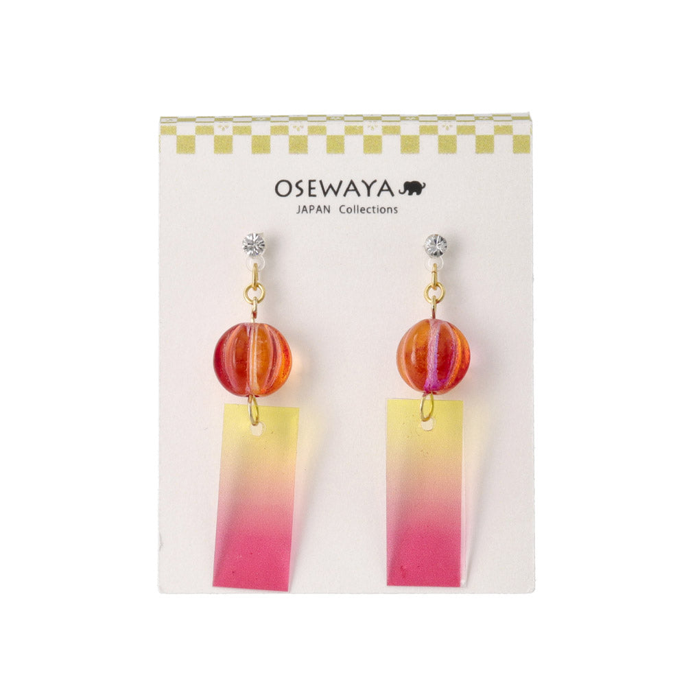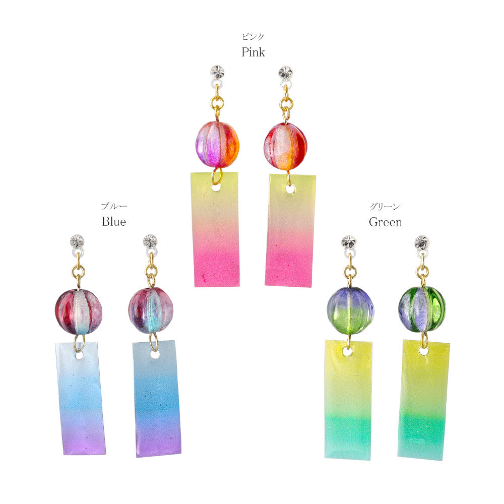 ax3262日本の夏を連想させる風鈴モチーフのピアス。ミニチュアの世界観がお好きな方にお勧めです。色鮮やかなグラデーションがとっても綺麗でコーデのアクセントとして差し色使いにも。人気の和風モチーフはプレゼントにも喜ばれます。