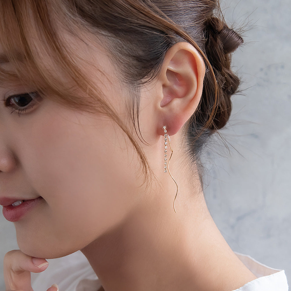 ax0413ストーン×ワイヤーのシンプルで使いやすいノンホールピアス。