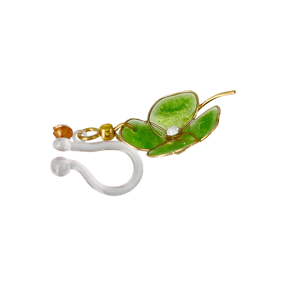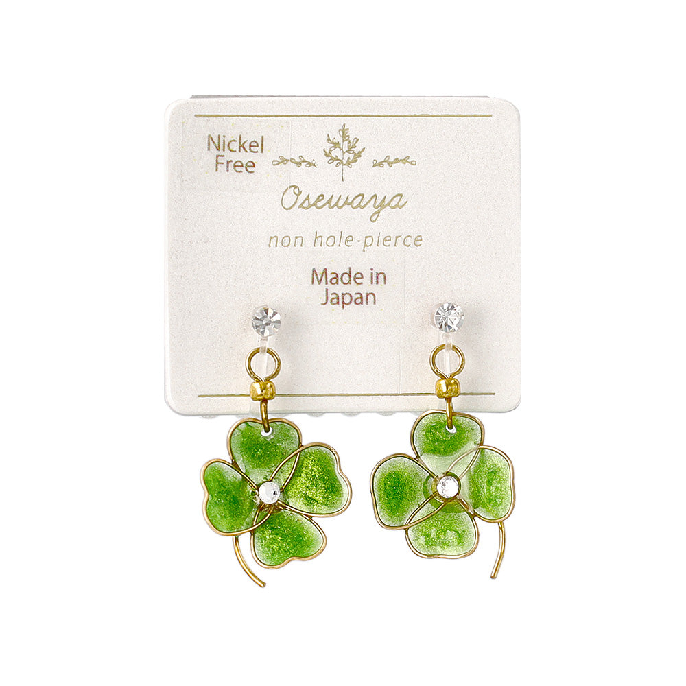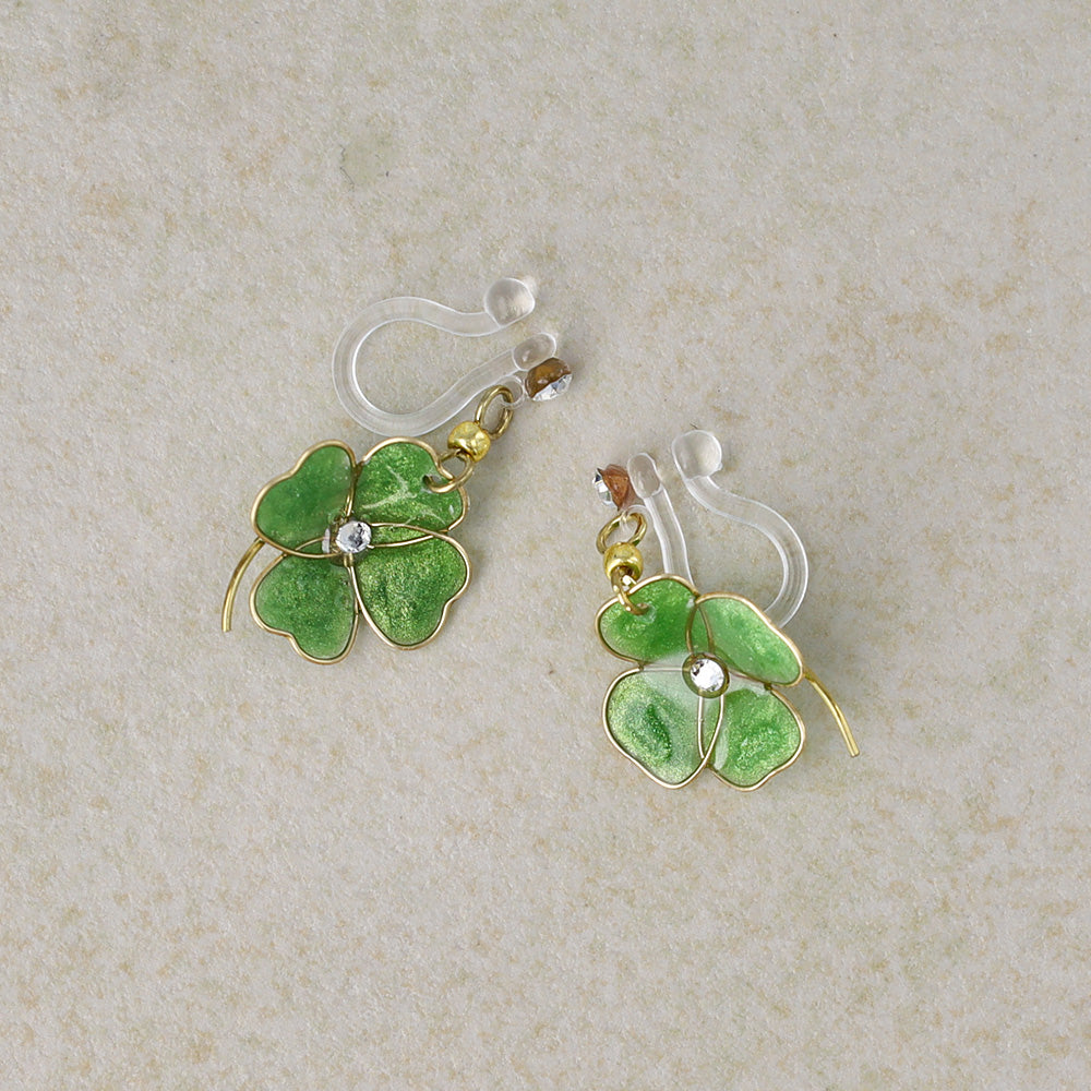 ノンホールピアス ニッケルフリー ワイヤーフラワー クローバー ストーン イヤリング 樹脂タイプ