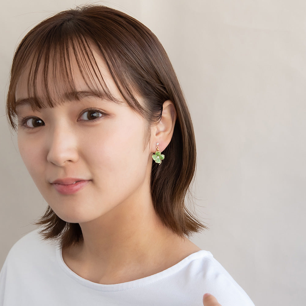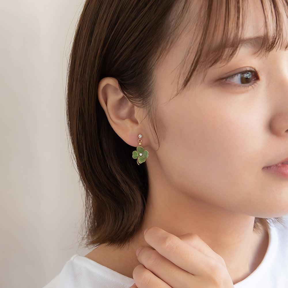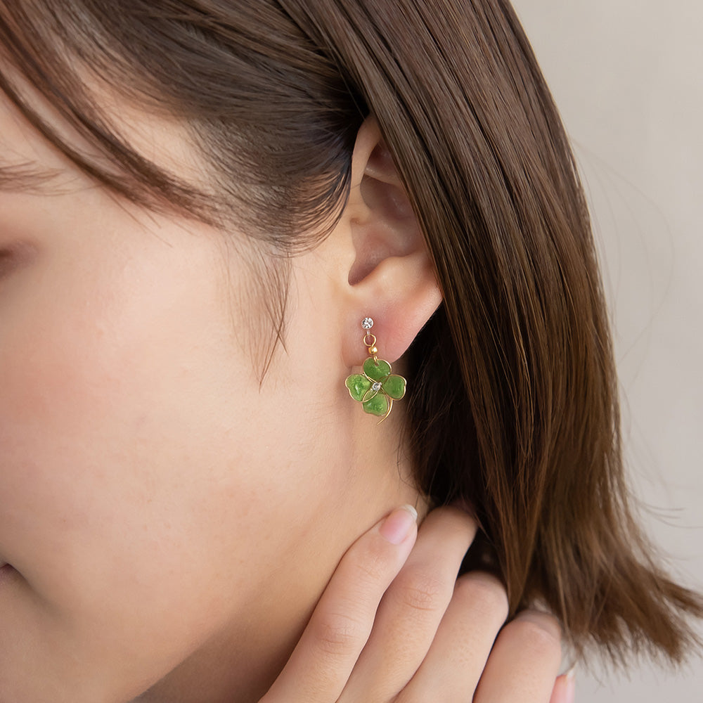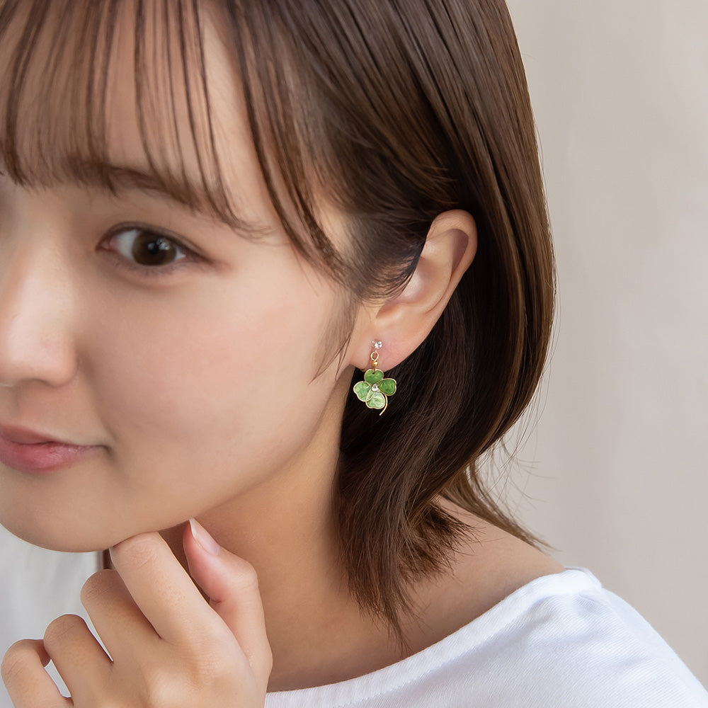 ax0558幸せの象徴とされているクローバーには、「四つ葉のクローバーは幸運を運ぶ」や「四葉1枚1枚それぞれに希望、幸福、愛情、健康」といわれる幸せな意味をもち幸運のシンボルとされています。ワンポイントにちょうどいい、上品で愛らしさのあるアイテム。ラッキーモチーフは、大切な方へのギフトなどにもおすすめです。