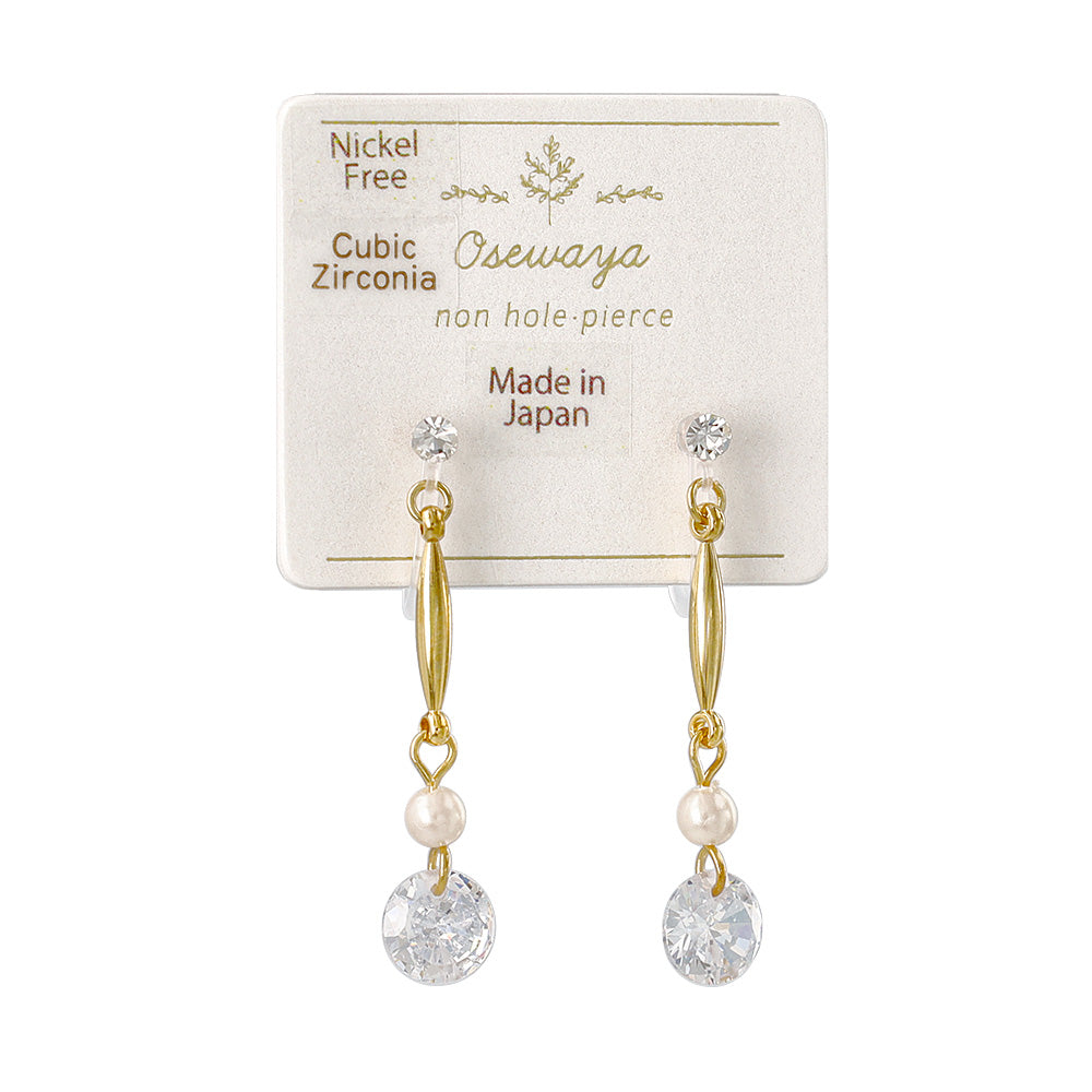 ノンホールピアス ニッケルフリー メタル キュービックジルコニア パール イヤリング 樹脂タイプ