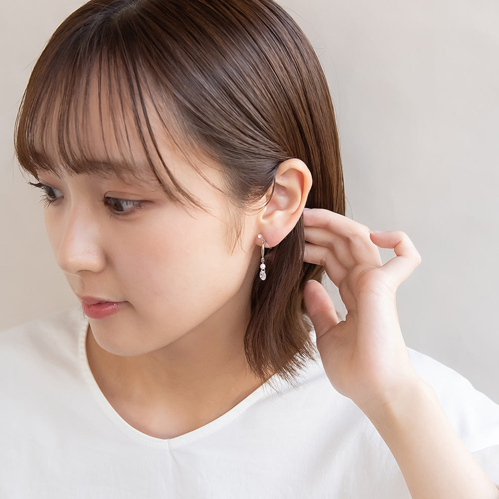 ax0563”ゆれる”の動作が美しさをつくりだす、立体感のあるノンホールピアス。キラリと光るキュービックジルコニアが耳元に存在感をプラスします。