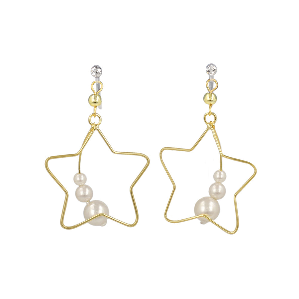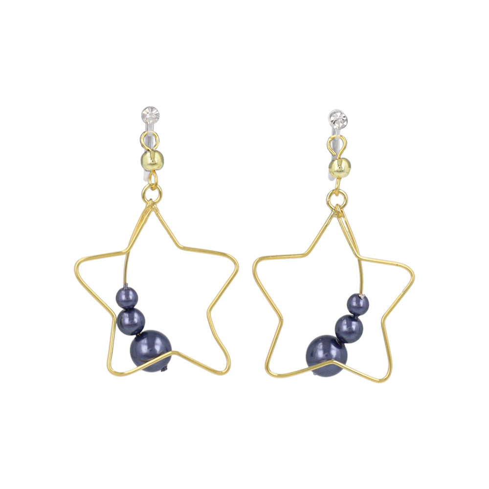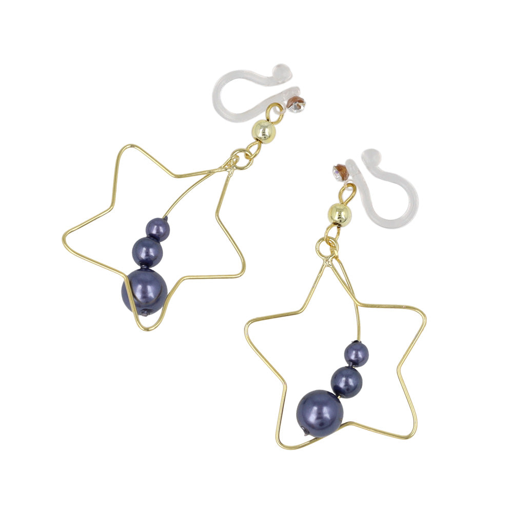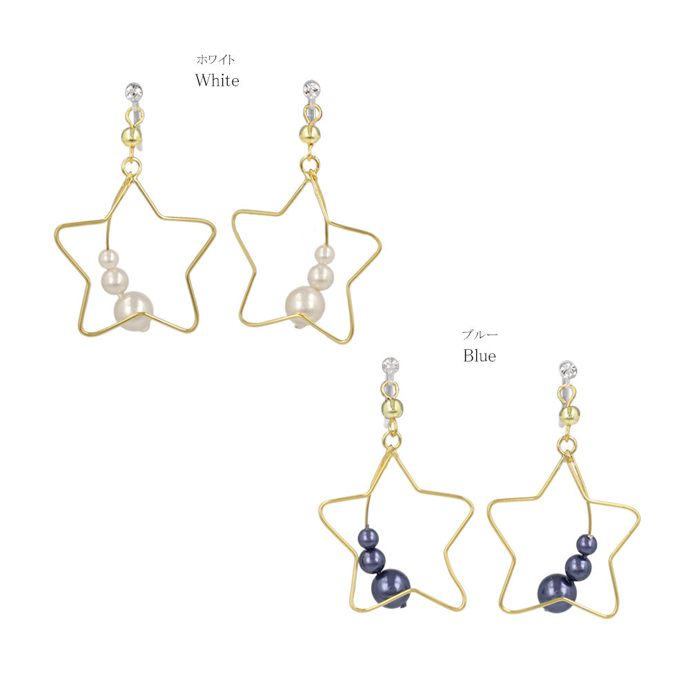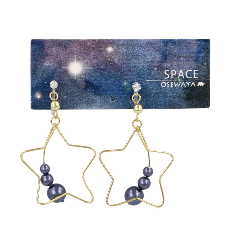 ノンホールピアス ニッケルフリー 宇宙モチーフ スターフレーム 惑星パール イヤリング 樹脂タイプ