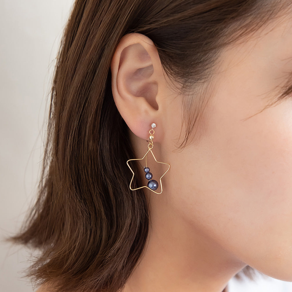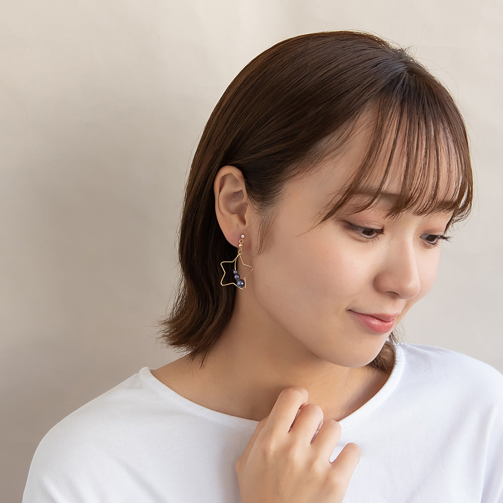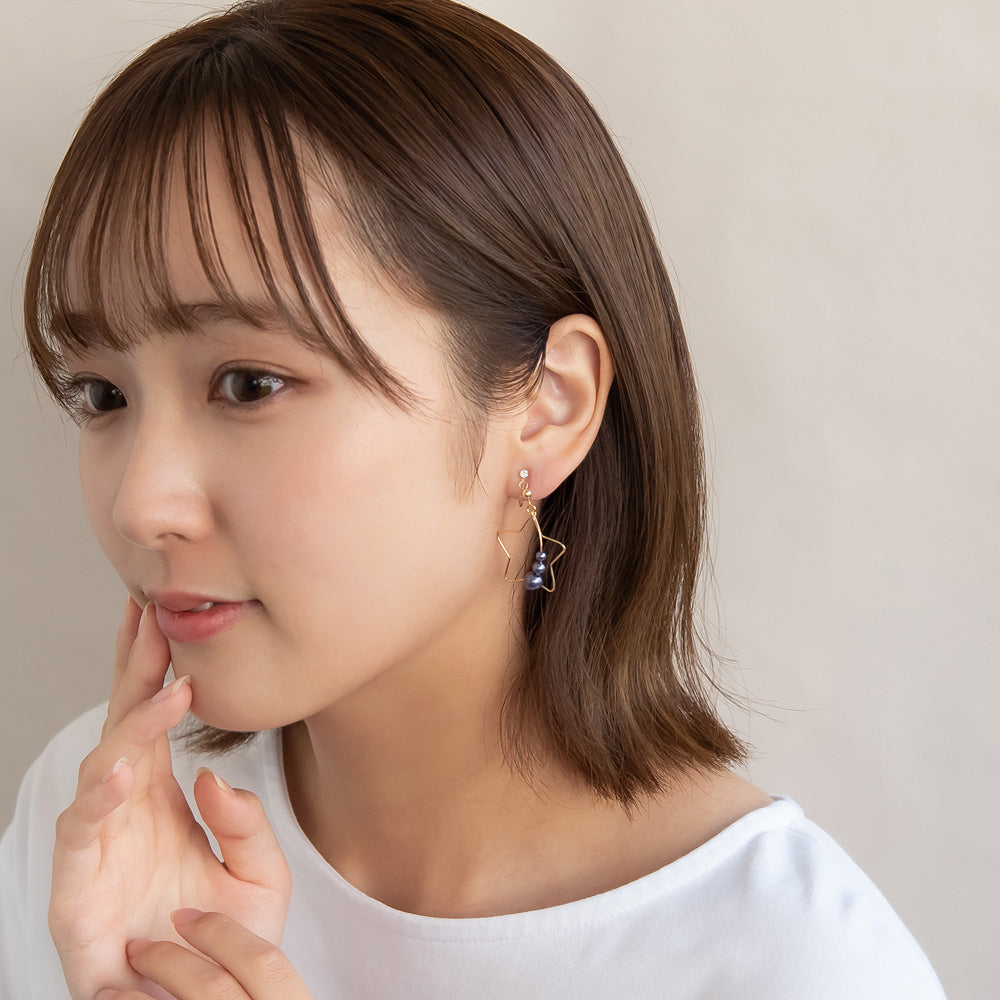 ax1410キラキラと輝く星たちの瞬き、神秘的に広がる宇宙をイメージした人気のギャラクシーモチーフ。人気のゆれるデザインで、耳元を華やかに演出します。さりげないゆれ感もかわいく、存在感もあってコーデ映え。