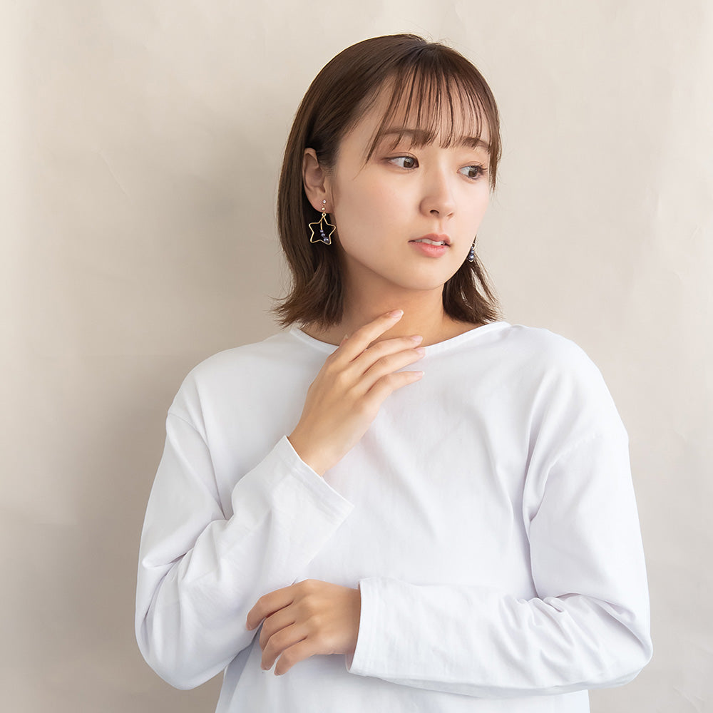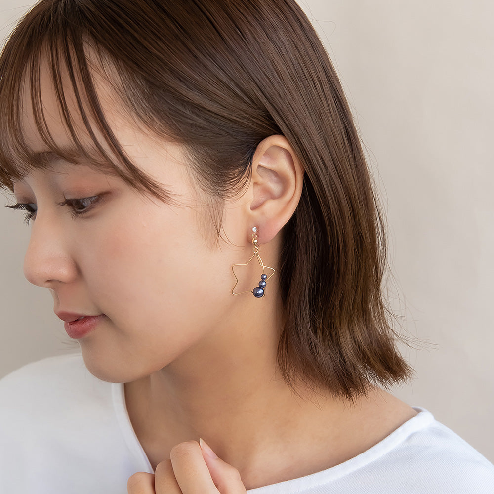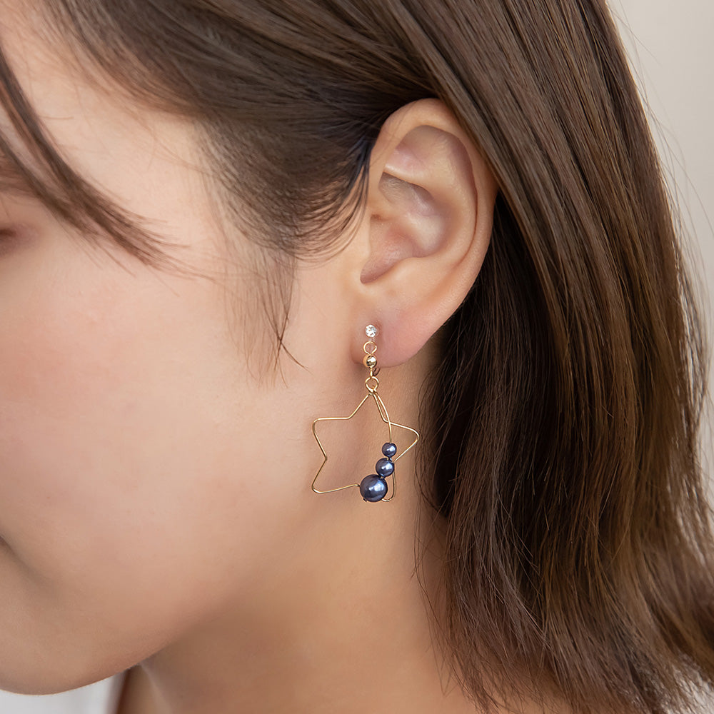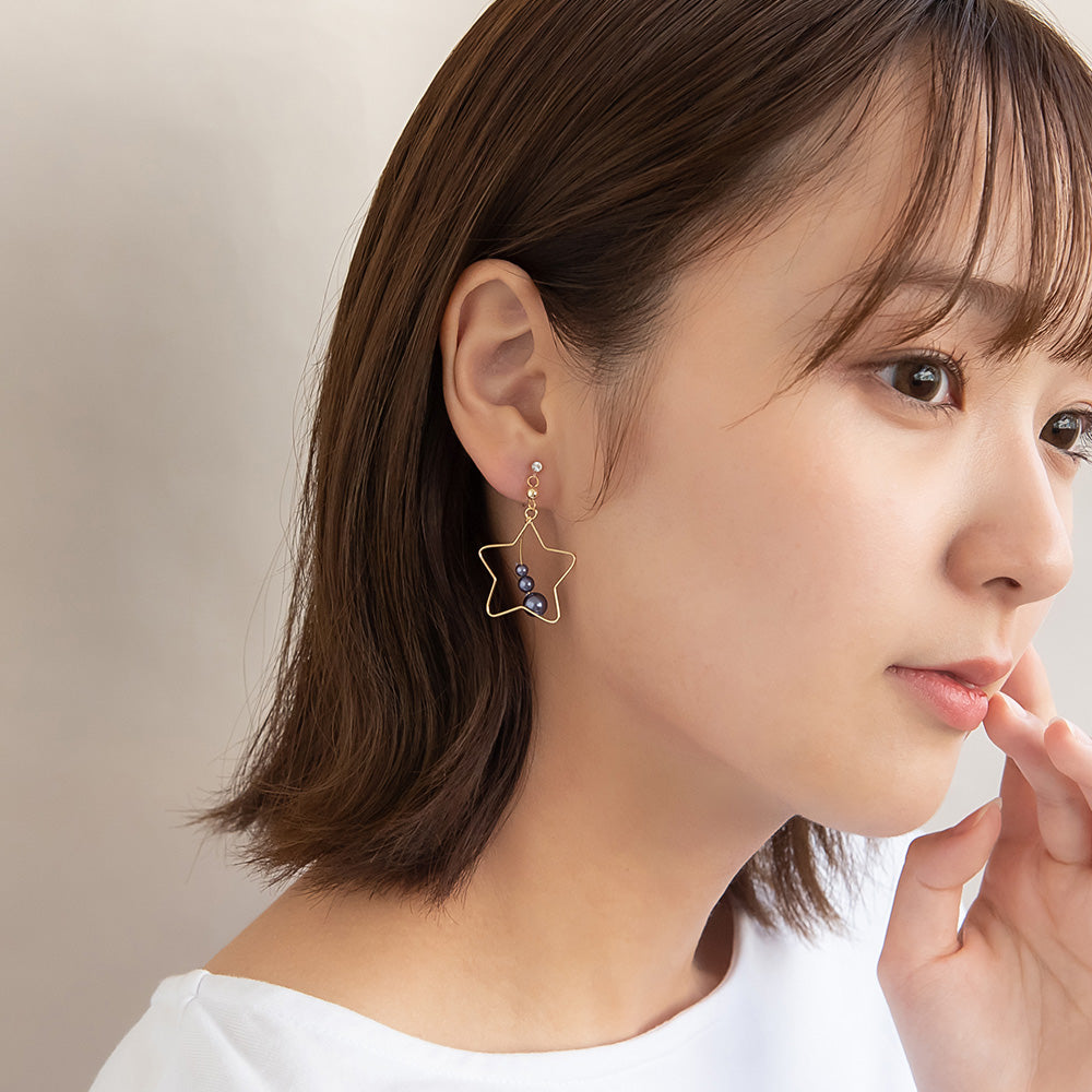 ax1410キラキラと輝く星たちの瞬き、神秘的に広がる宇宙をイメージした人気のギャラクシーモチーフ。人気のゆれるデザインで、耳元を華やかに演出します。さりげないゆれ感もかわいく、存在感もあってコーデ映え。