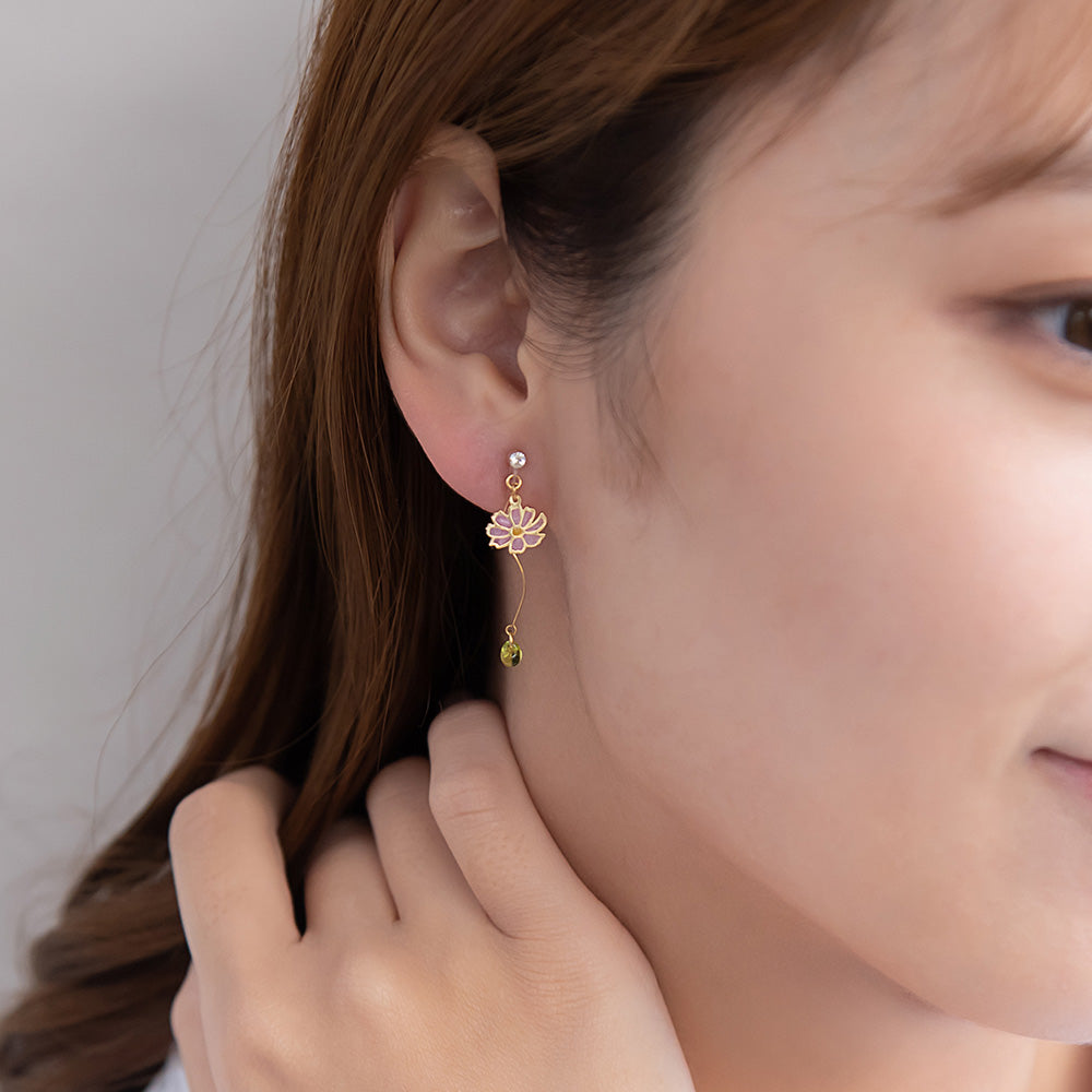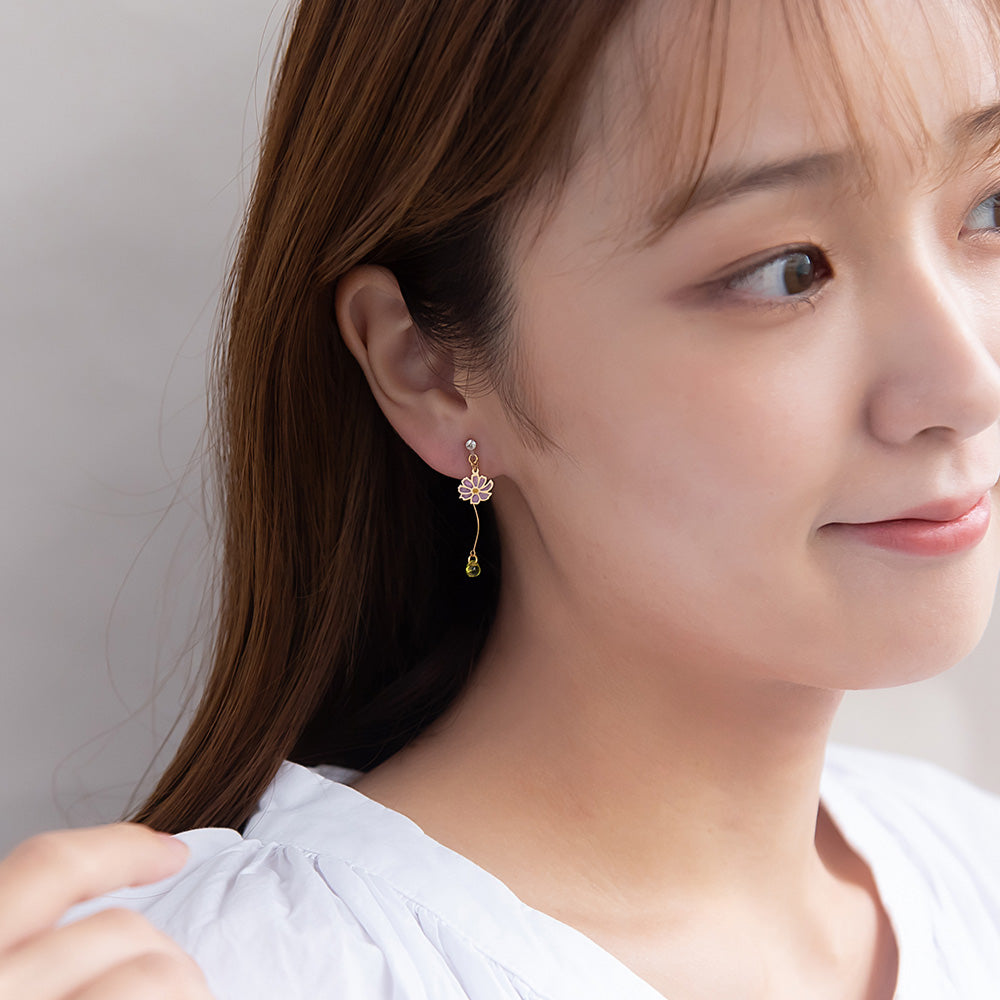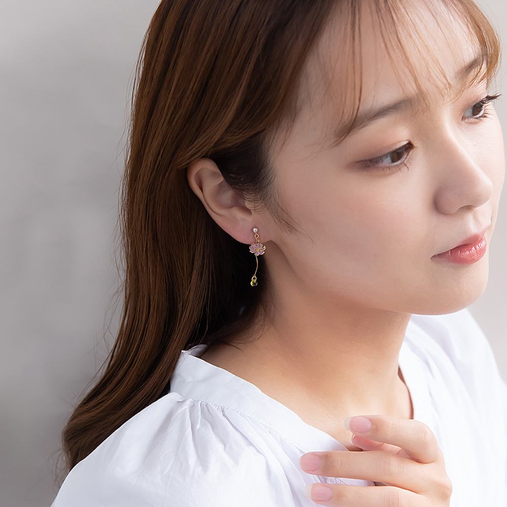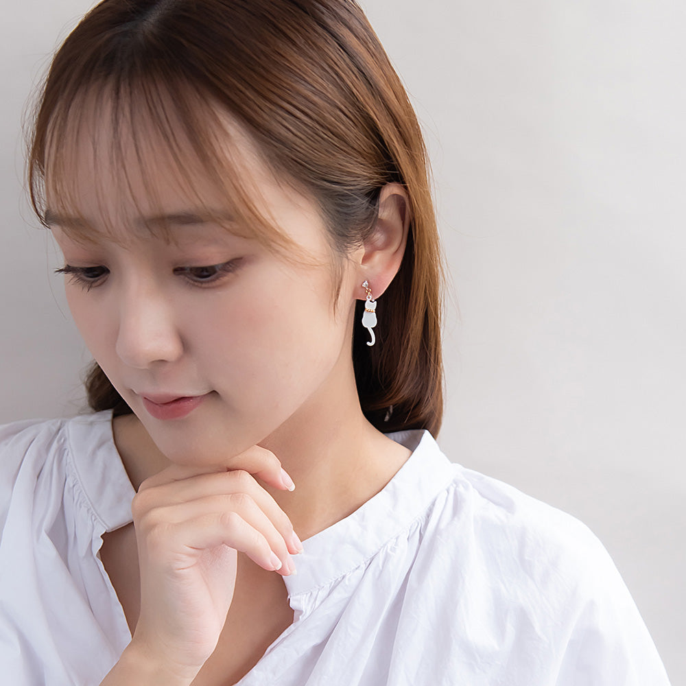 ax2057とにかく可愛い、おしゃれなネコちゃんとお花のノンホールピアス。猫好きさんのハートをわしづかみ。プレゼントにも◎