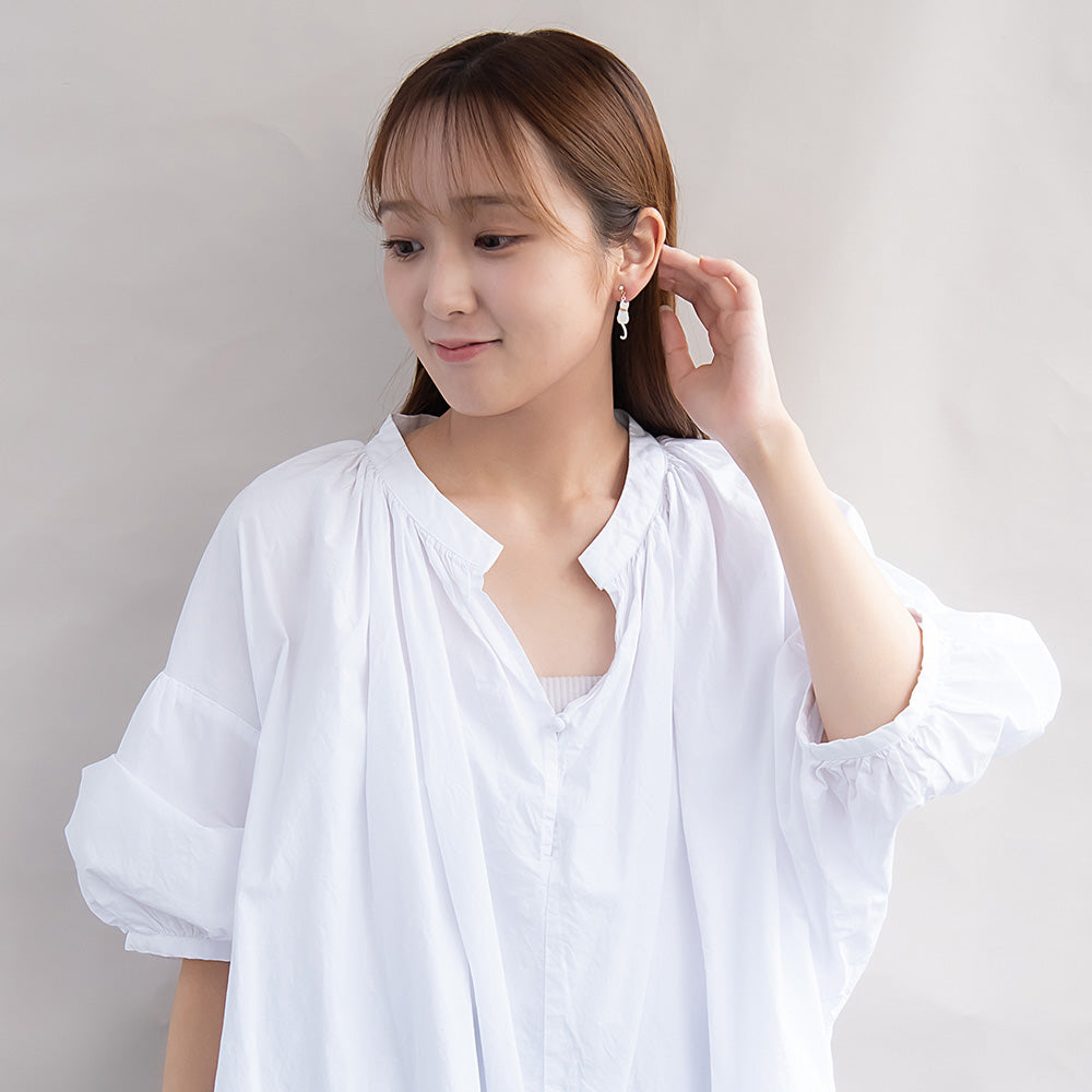 ノンホールピアス ネコ フラワー ウェーブ ドロップ イヤリング 樹脂タイプ