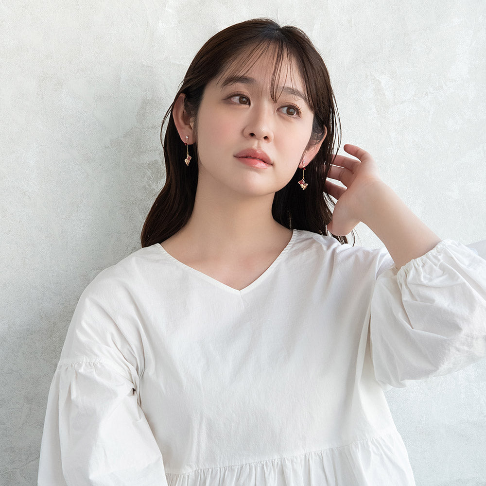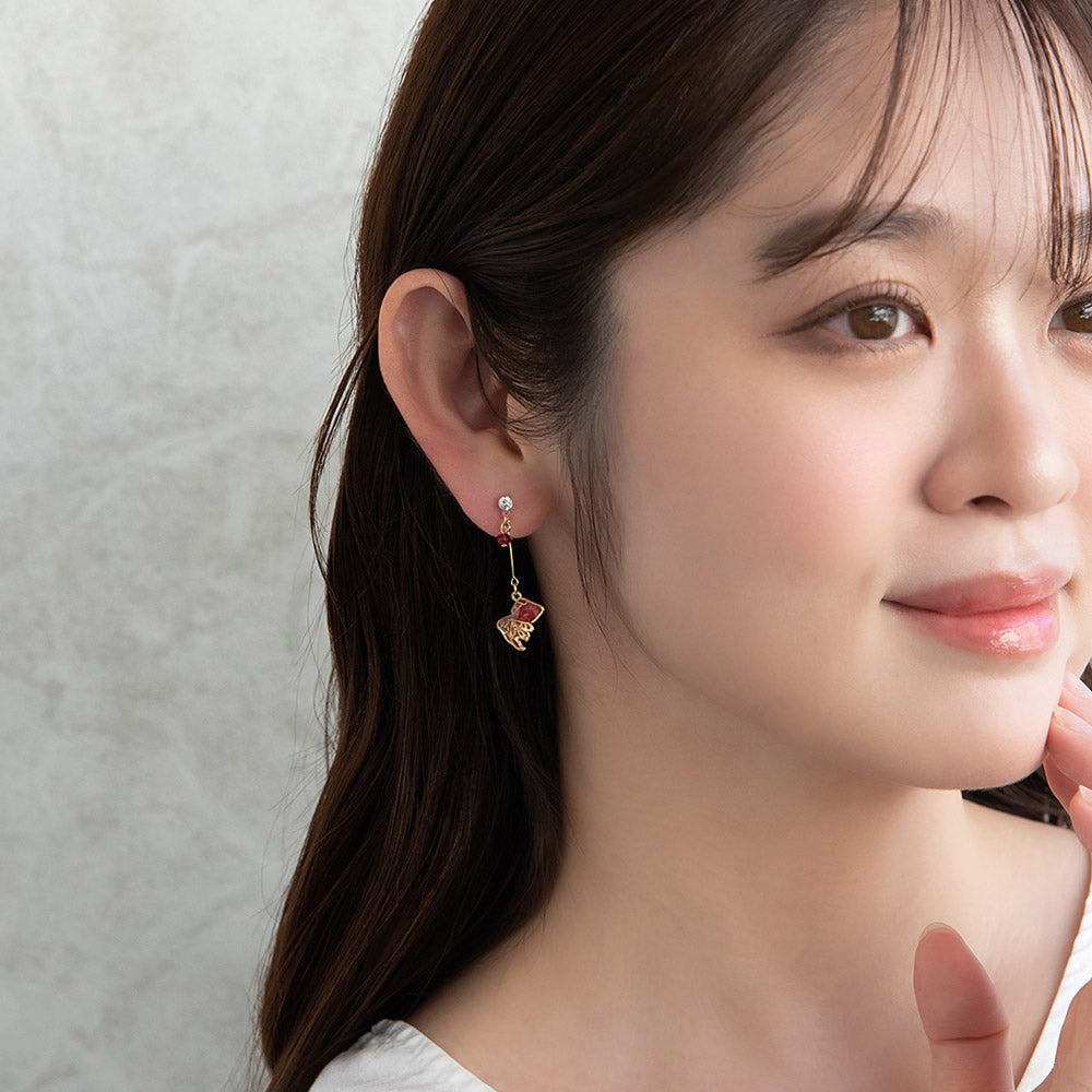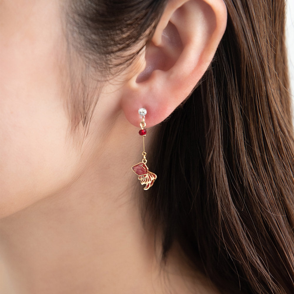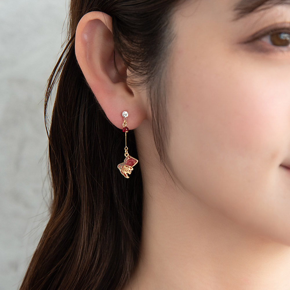 縁起物としても人気の金魚をモチーフにしたノンホールピアスは、さりげないゆれ感もかわいく、涼し気で夏らしいアイテムとなっています。和風モチーフは浴衣や着物によく合うので、お祭りや花火大会などのコーディネートにもおすすめです。