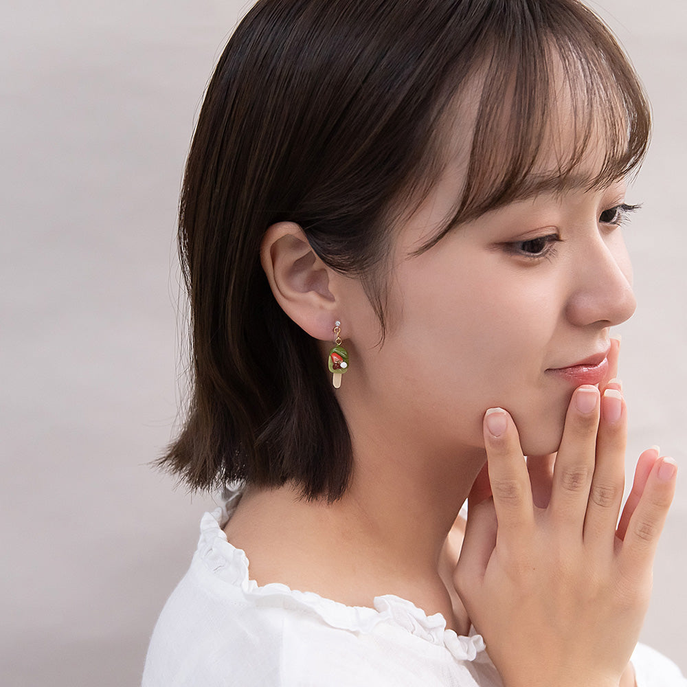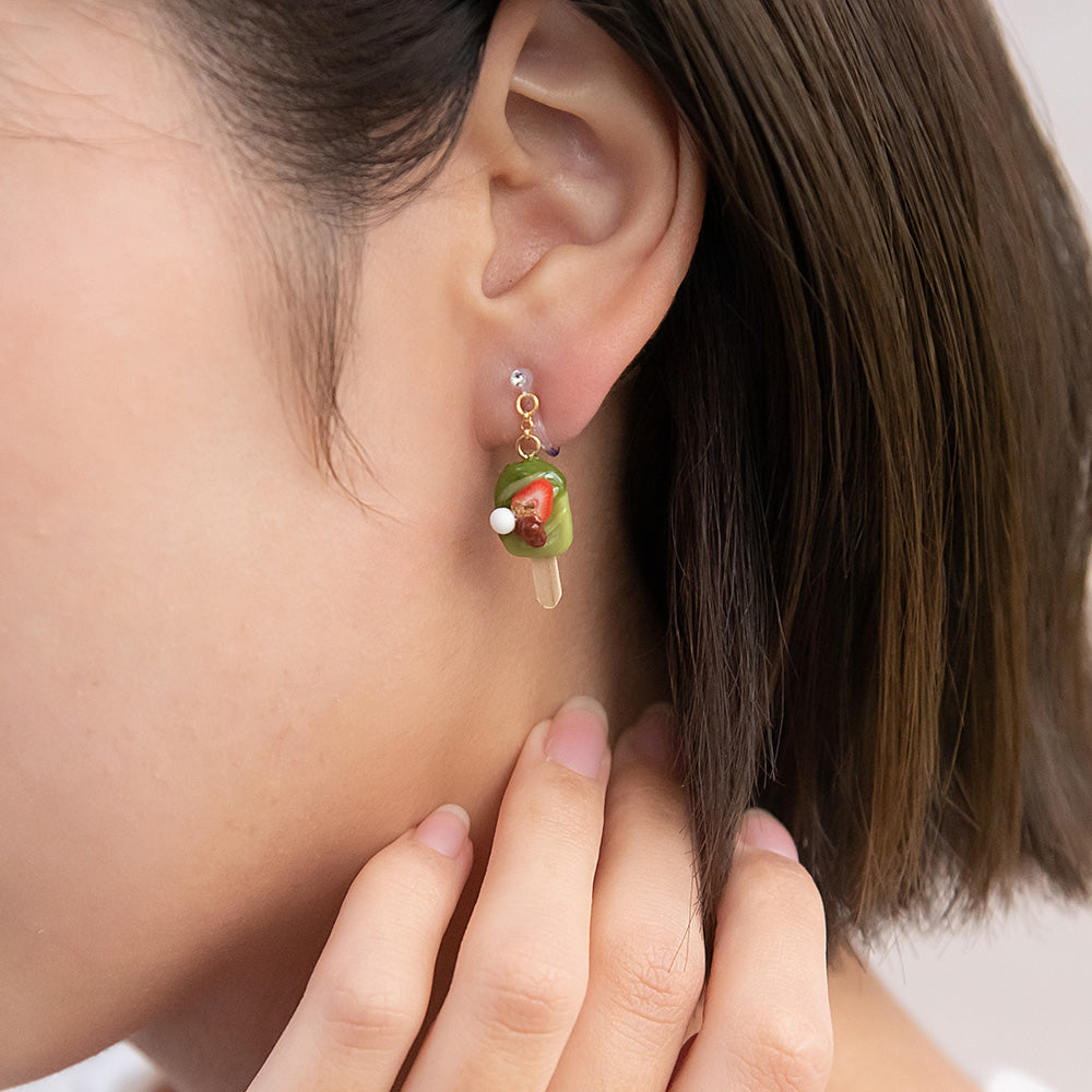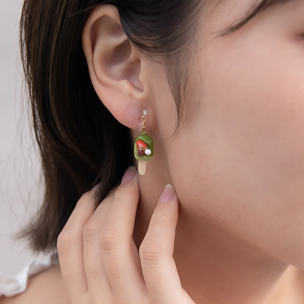 ノンホールピアス 抹茶 アイスバー 苺 イヤリング 樹脂タイプ