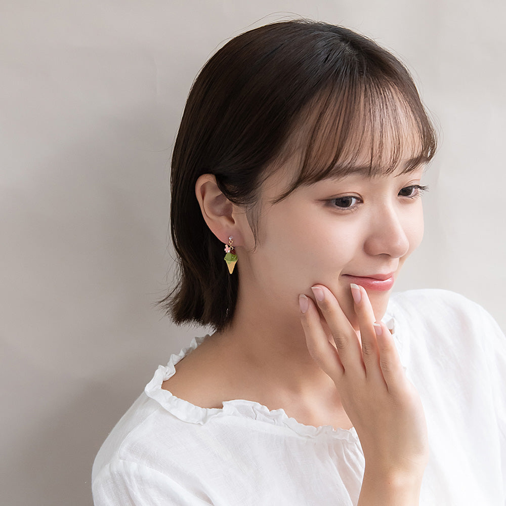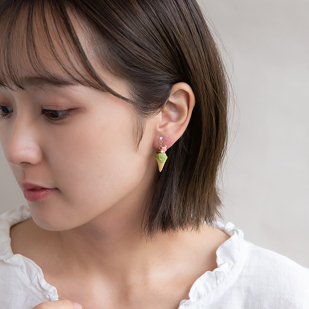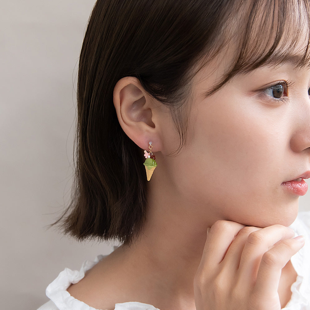 ノンホールピアス 抹茶 アイスクリーム イヤリング 樹脂タイプ