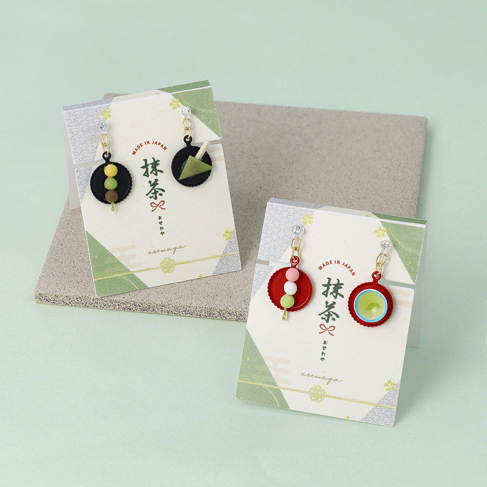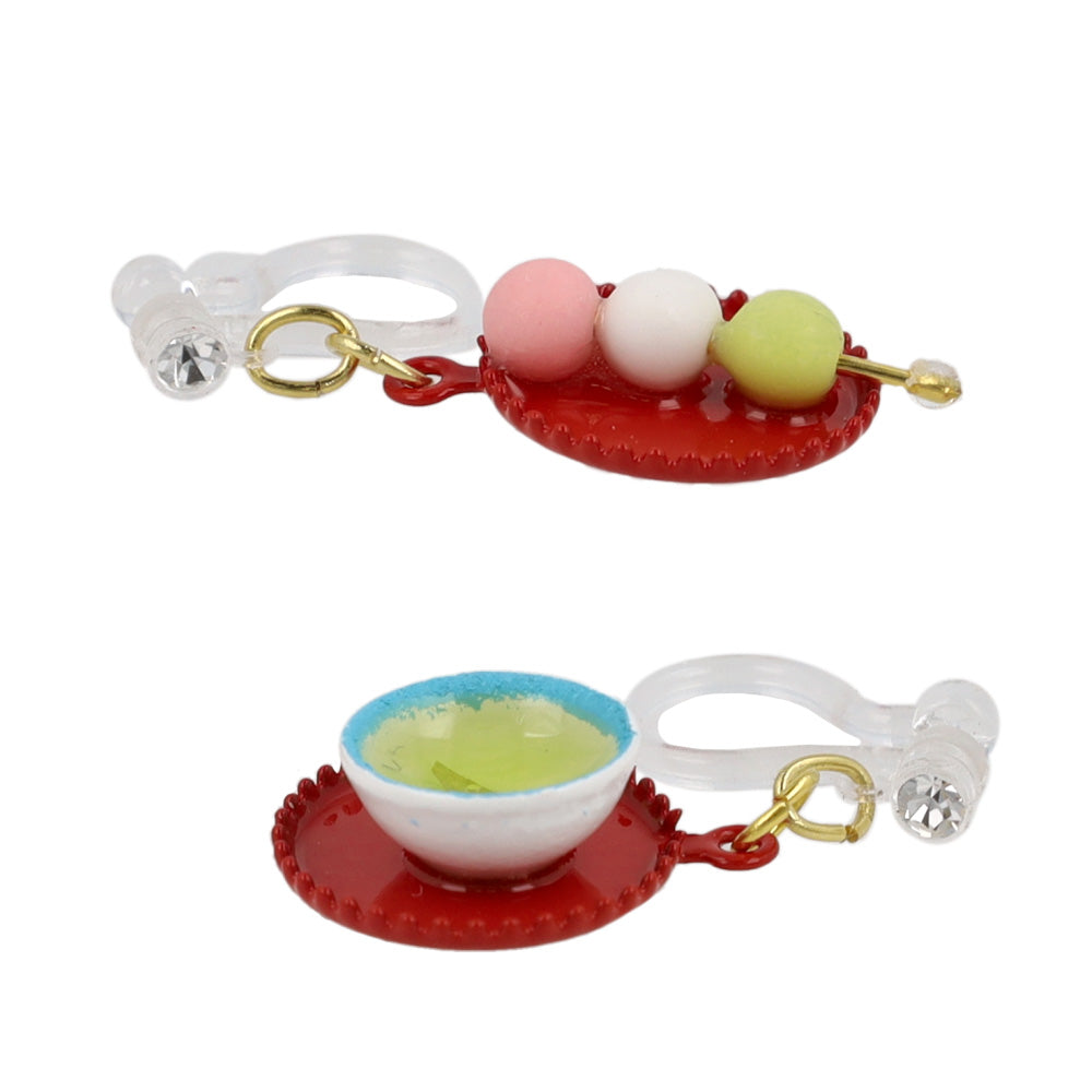 ノンホールピアス 抹茶 和菓子 お茶 イヤリング 樹脂タイプ