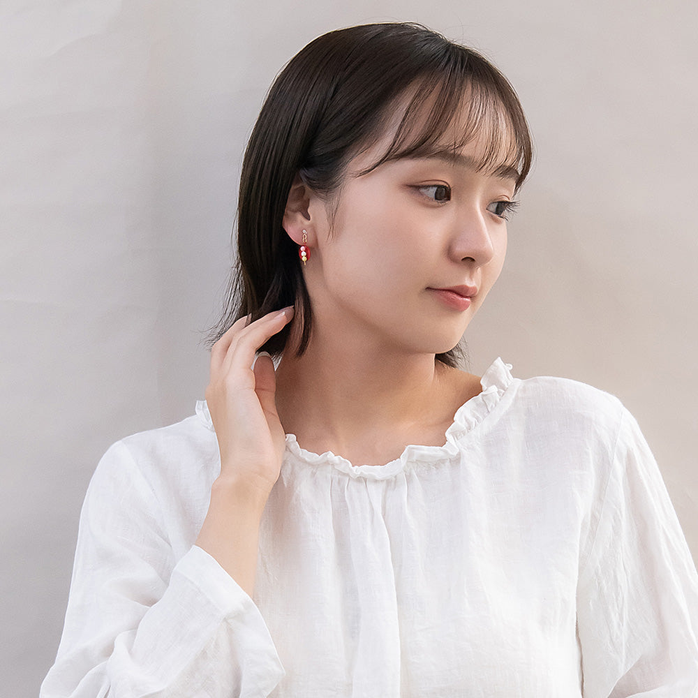 本物みたいなミニチュアスイーツが可愛いノンホールピアス。和風な装いにも◎