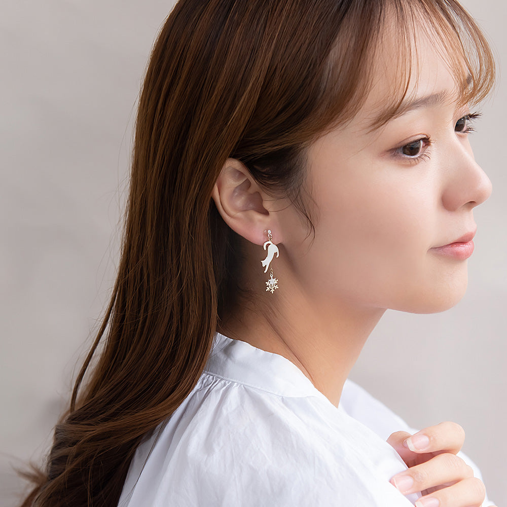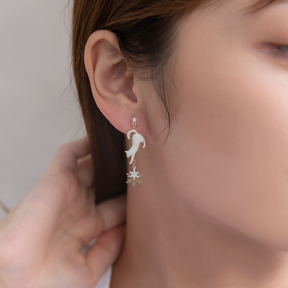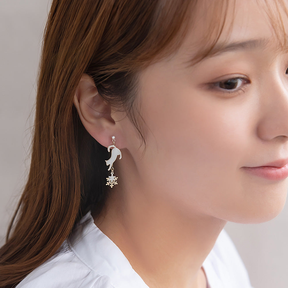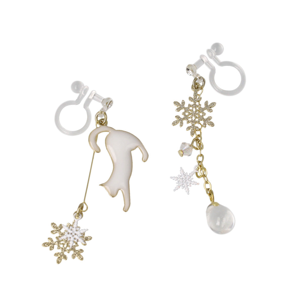 ax5037寒い季節の贈り物にもぴったり、雪の結晶と猫のロマンチックなデザインのノンホールピアス。