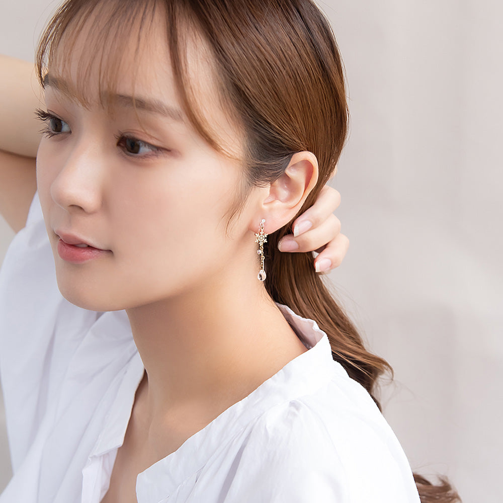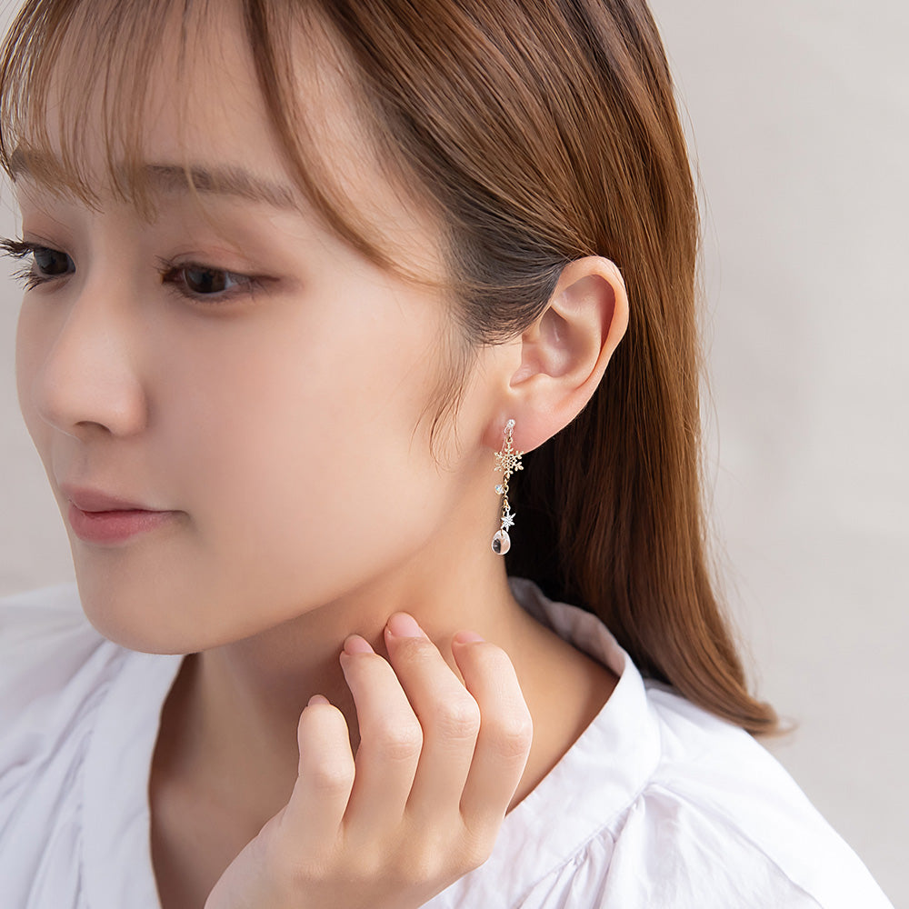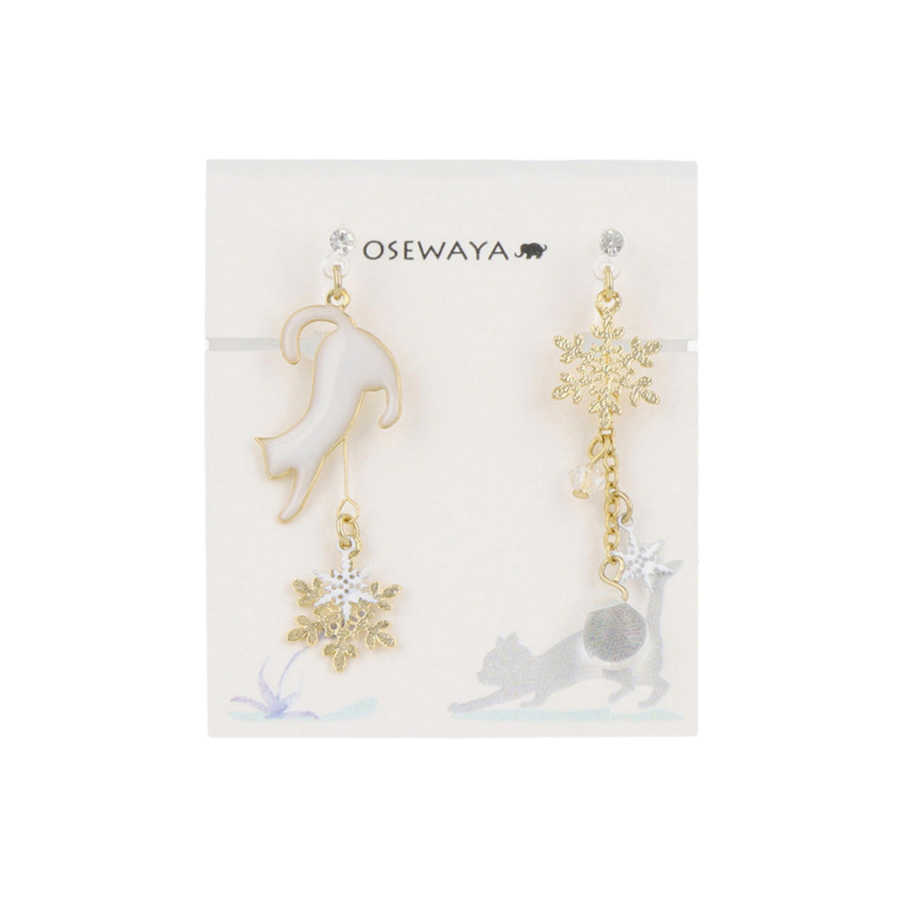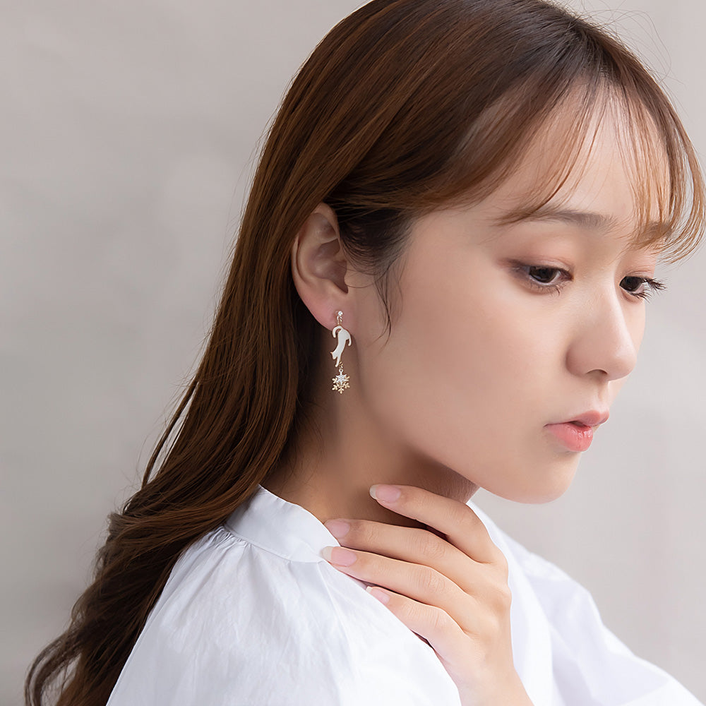 ax5037寒い季節の贈り物にもぴったり、雪の結晶と猫のロマンチックなデザインのノンホールピアス。