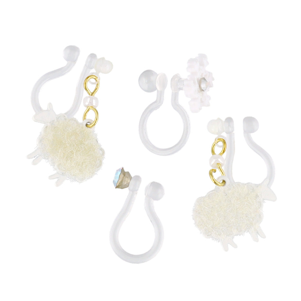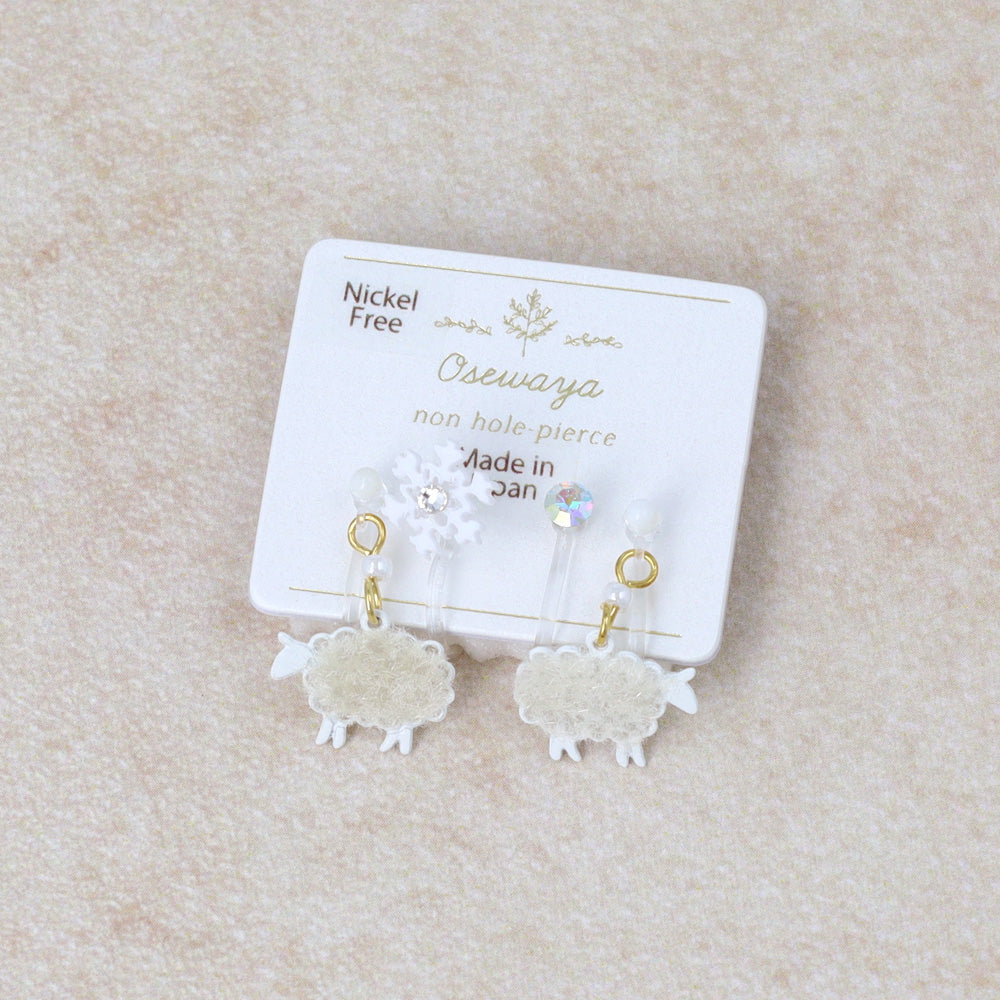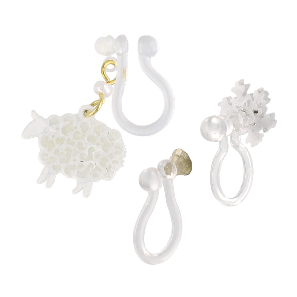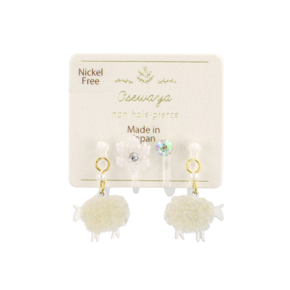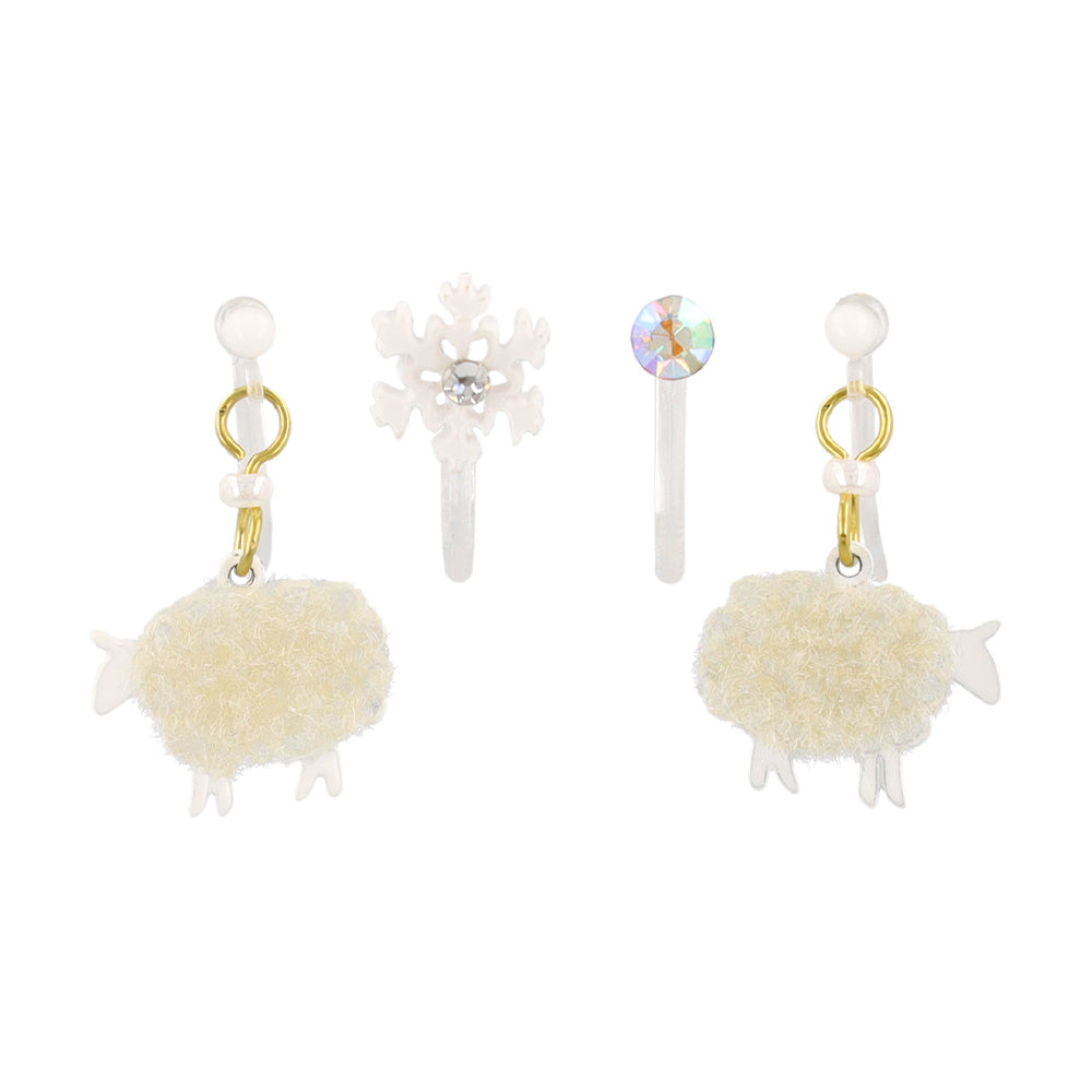 ノンホールピアス ニッケルフリー ひつじ 雪の結晶 ストーン 4個セット イヤリング 樹脂タイプ