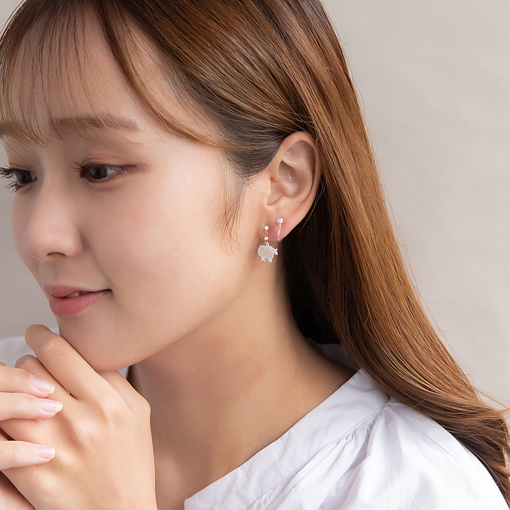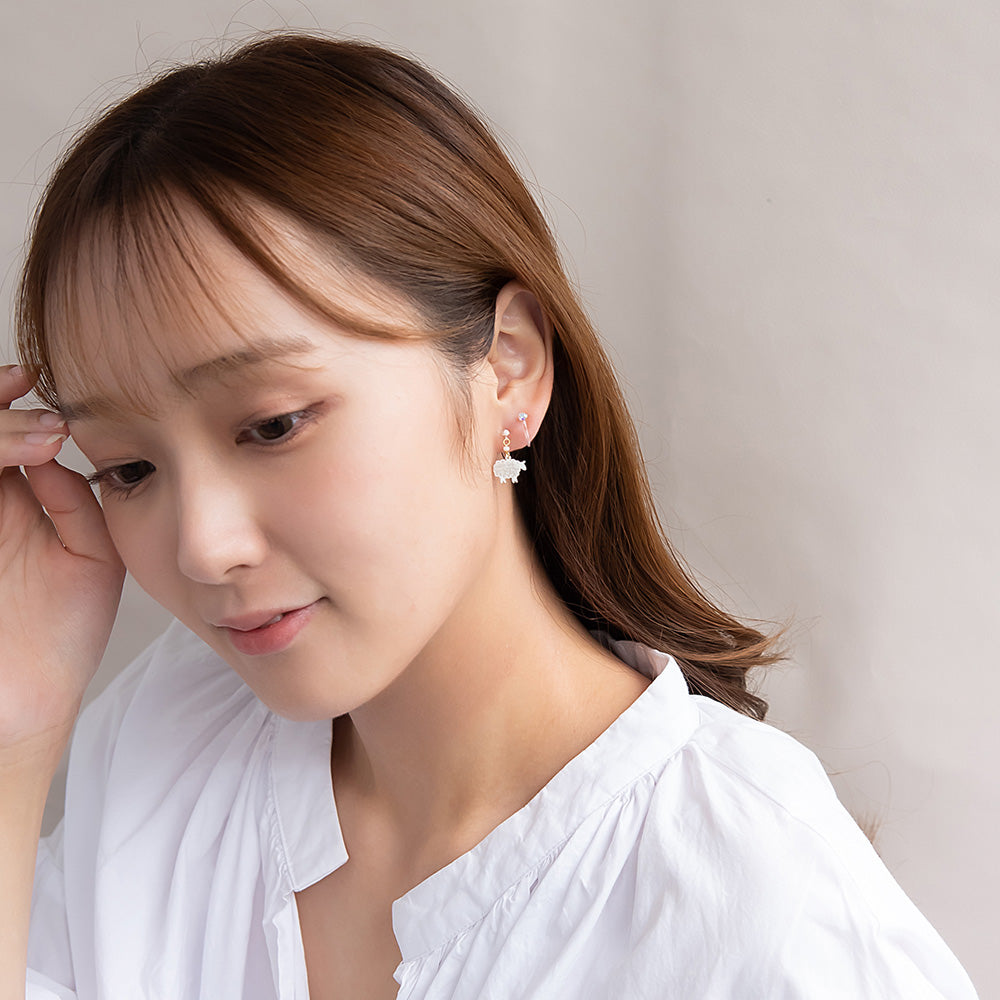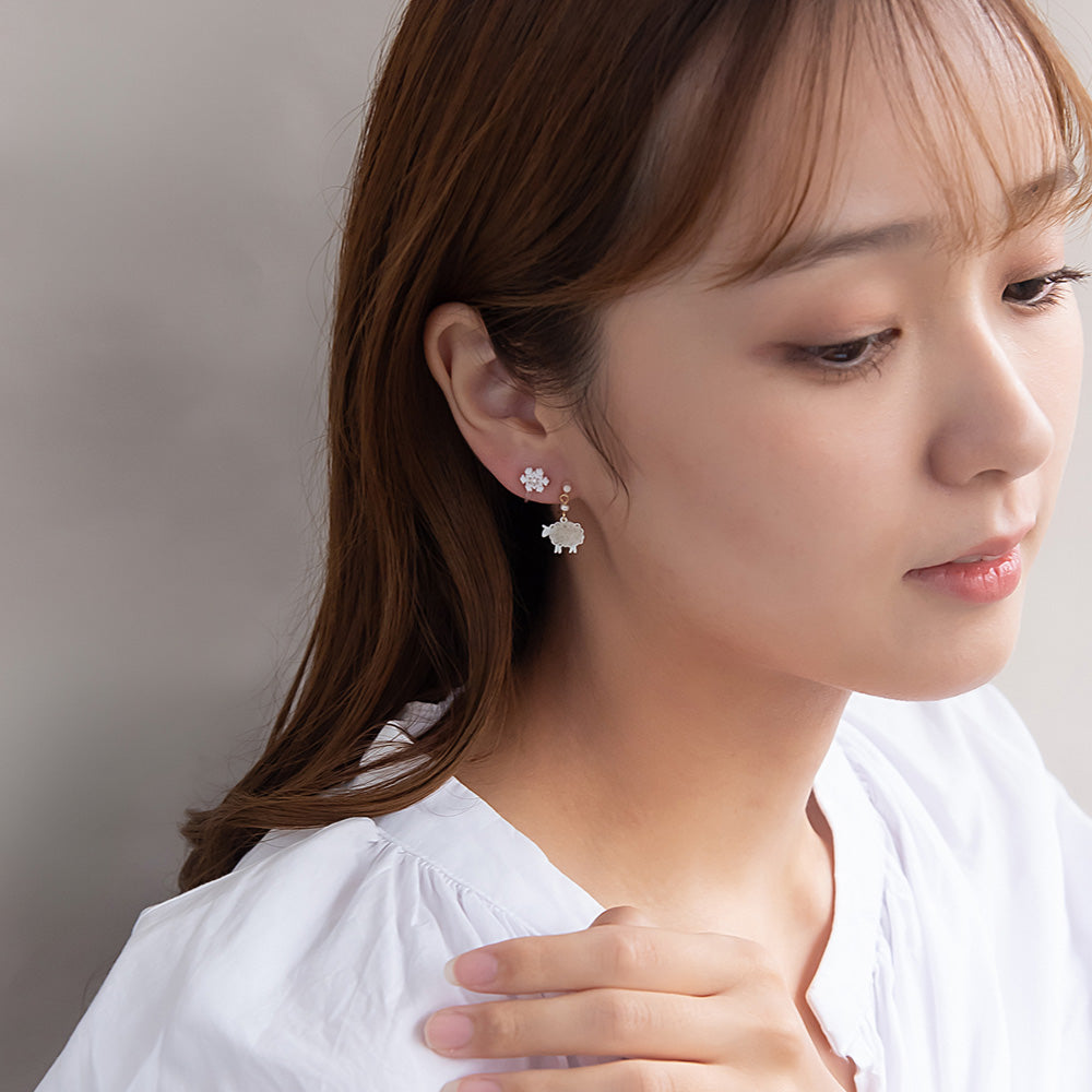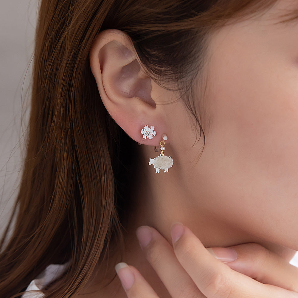 ax5169もこもこの羊さんと冬の訪れを感じる雪の結晶モチーフのピアス。シンプルなストーンもついた4ピースセットになっているので、その日の気分でお好きな組み合わせが楽しめます。寒い季節の贈り物にもぴったりのアイテムです。
