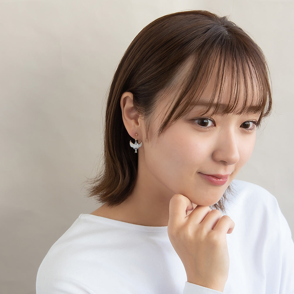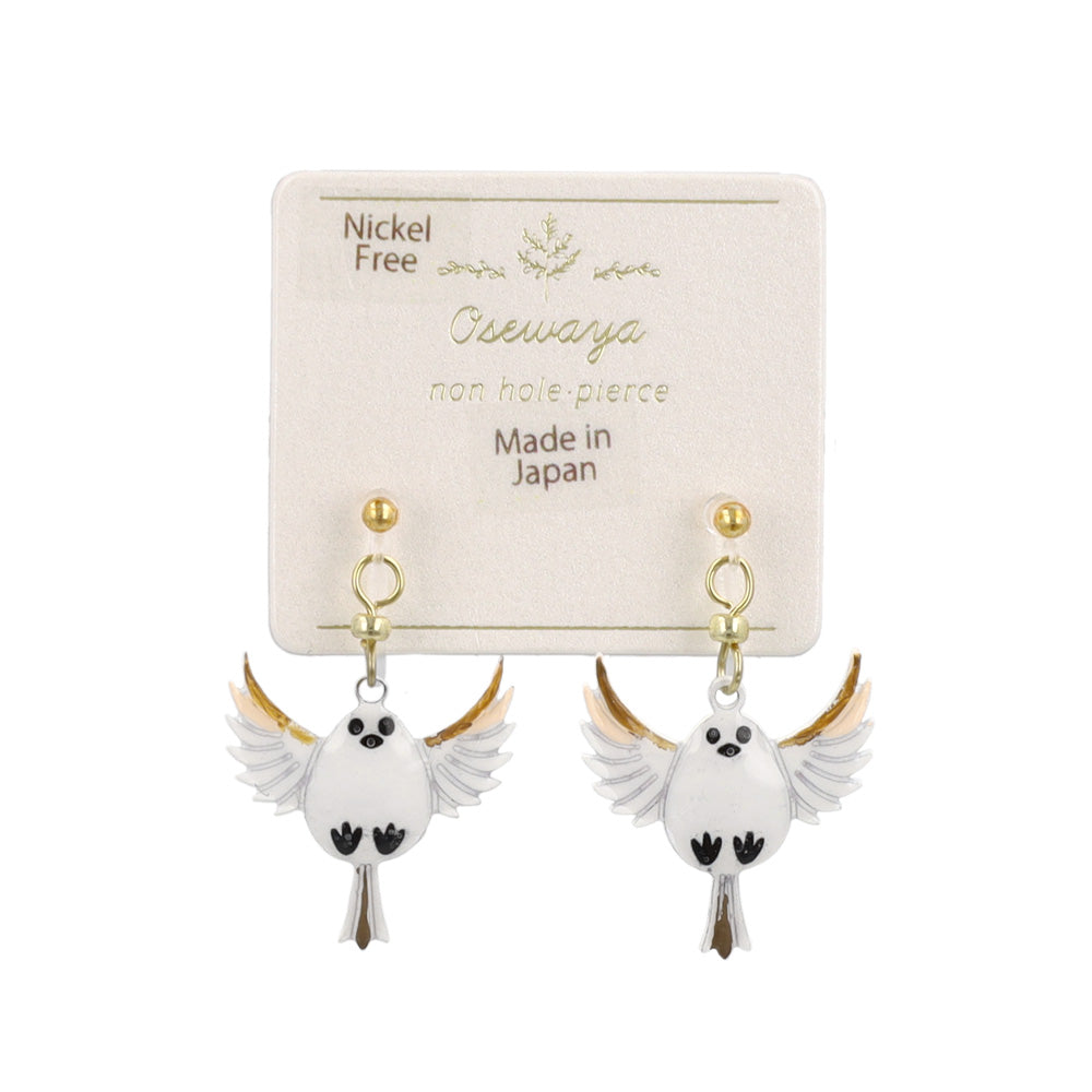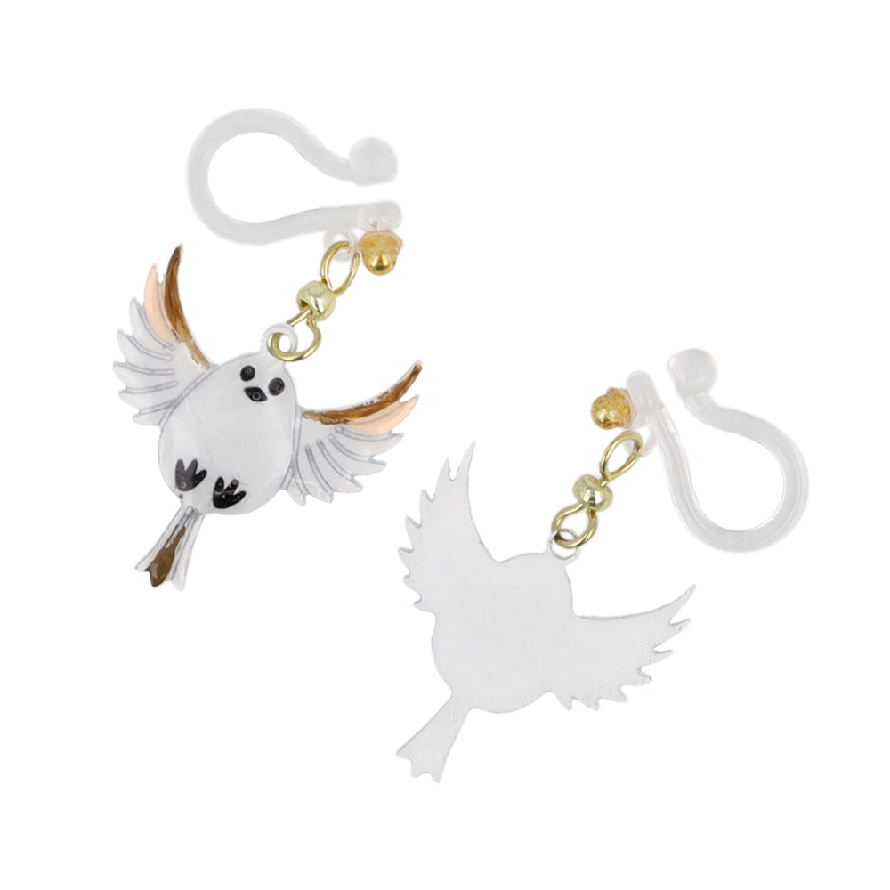 ノンホールピアス ニッケルフリー 羽ばたく シマエナガ イヤリング 樹脂タイプ