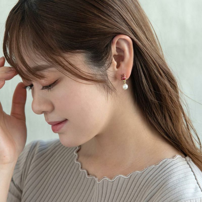ax0346甘く香るような美しいディティールをそのままに、薔薇のつぼみにパールを合わせたロマンチックなデザイン。